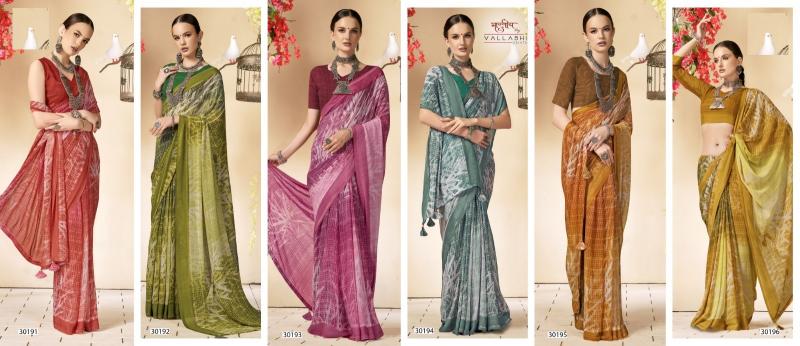 Looking for sanchali vol 13 by vallabhi prints daily wear georgette ethnic saree Full Catalouge at Best Price? Buy Now sanchali vol 13 by vallabhi prints daily wear georgette ethnic saree at Wholesale Rate of Rs 3390 with Total 6 Pcs from authroized dealer and supplier of Vallabhi Prints Brand. Cost of Each piece is just only Rs 565 which is very low and affordable price to resale the product in your retail store. rrgandhi is Surat based Wholesale Supplier & Dealer of Vallabhi Prints Brand. Click on Brand name to Know more about Brand's products.