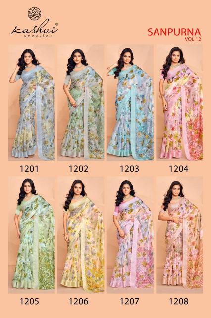 Looking for sanpurna vol 12 by kashvi creation casual sonakshi patta saree exports Full Catalouge at Best Price? Buy Now sanpurna vol 12 by kashvi creation casual sonakshi patta saree exports at Wholesale Rate of Rs 2720 with Total 8 Pcs from authroized dealer and supplier of Kashvi Creation Brand. Cost of Each piece is just only Rs 340 which is very low and affordable price to resale the product in your retail store. rrgandhi is Surat based Wholesale Supplier & Dealer of Kashvi Creation Brand. Click on Brand name to Know more about Brand's products.