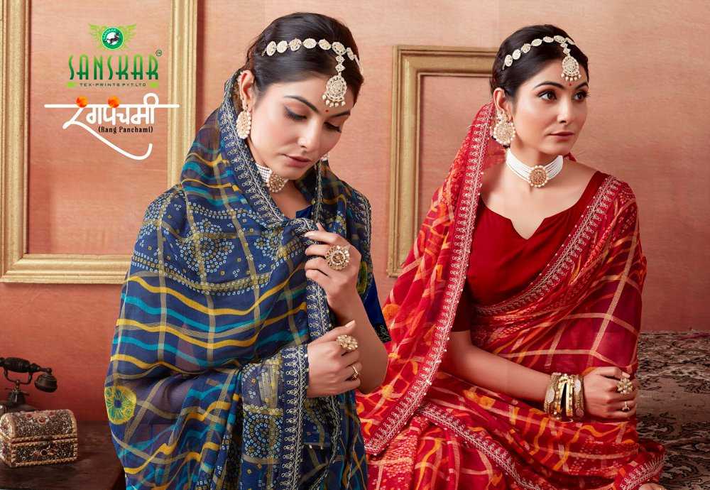 Looking for sanskar rangpanchami latest bandhani saree supplier Full Catalouge at Best Price? Buy Now sanskar rangpanchami latest bandhani saree supplier at Wholesale Rate of Rs 6120 with Total 8 Pcs from authroized dealer and supplier of Sanskar Tex Prints Brand. Cost of Each piece is just only Rs 765 which is very low and affordable price to resale the product in your retail store. rrgandhi is Surat based Wholesale Supplier & Dealer of Sanskar Tex Prints Brand. Click on Brand name to Know more about Brand's products.