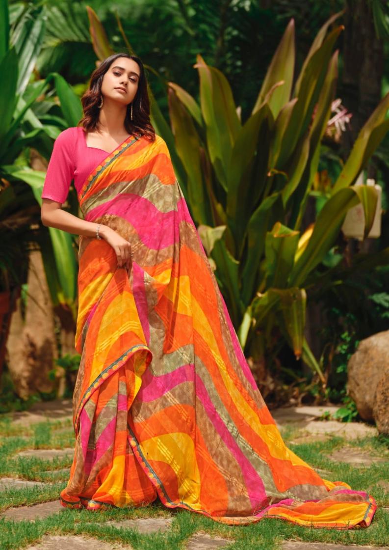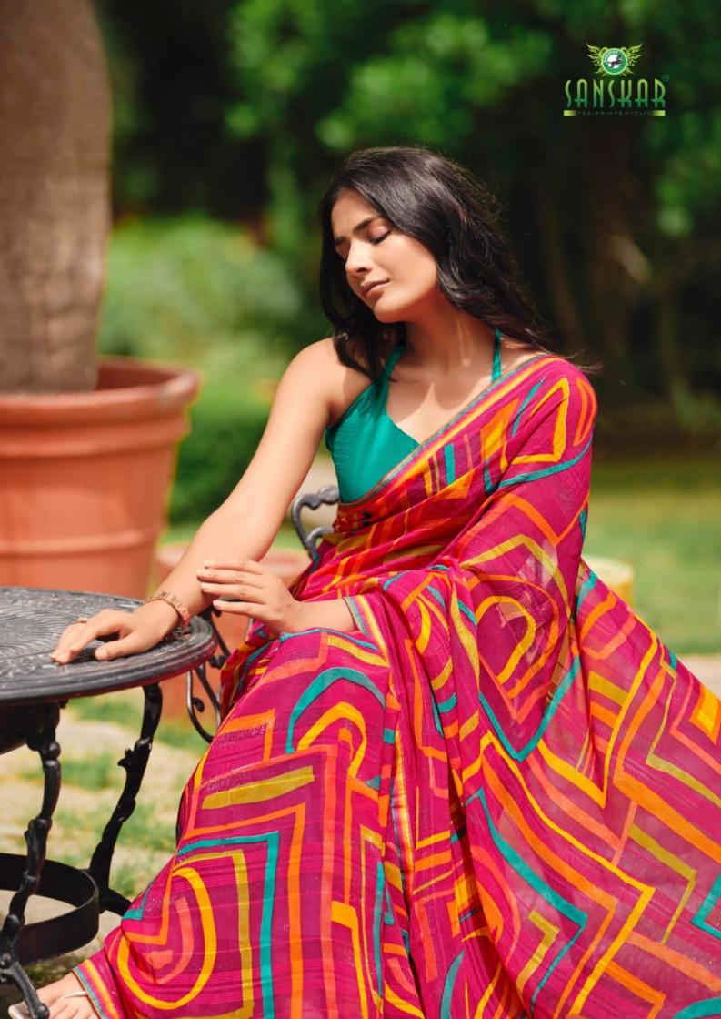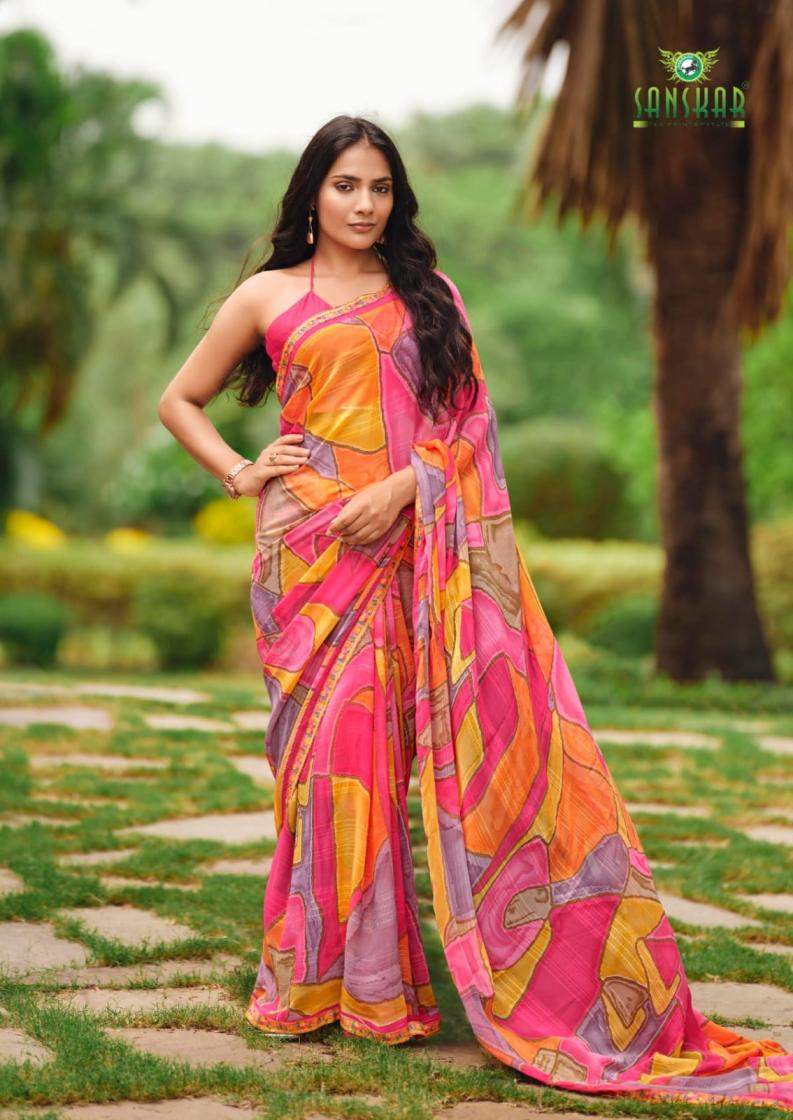 Looking for SANSKAR TEX PRINTS KASTURI GEORGETTE PRETTY LOOK SAREE ONLINE Full Catalouge at Best Price? Buy Now SANSKAR TEX PRINTS KASTURI GEORGETTE PRETTY LOOK SAREE ONLINE at Wholesale Rate of Rs 3880 with Total 8 Pcs from authroized dealer and supplier of Sanskar Tex Prints Brand. Cost of Each piece is just only Rs 485 which is very low and affordable price to resale the product in your retail store. rrgandhi is Surat based Wholesale Supplier & Dealer of Sanskar Tex Prints Brand. Click on Brand name to Know more about Brand's products.