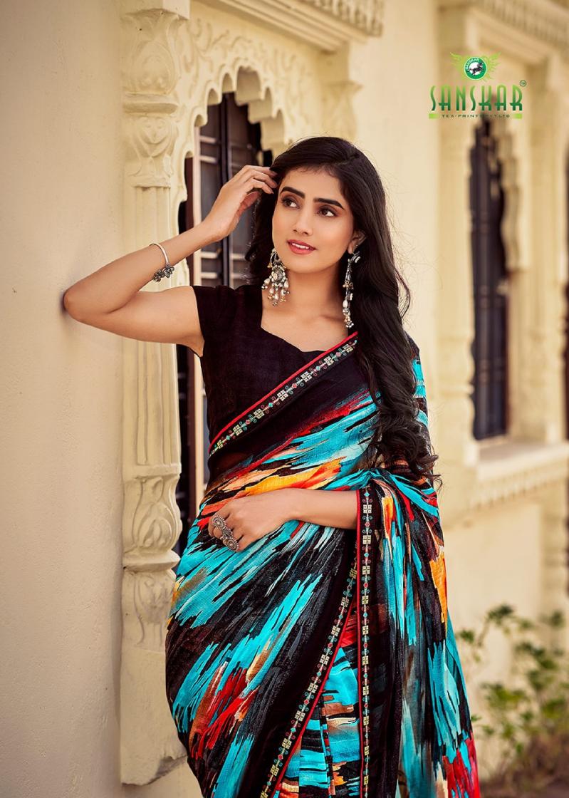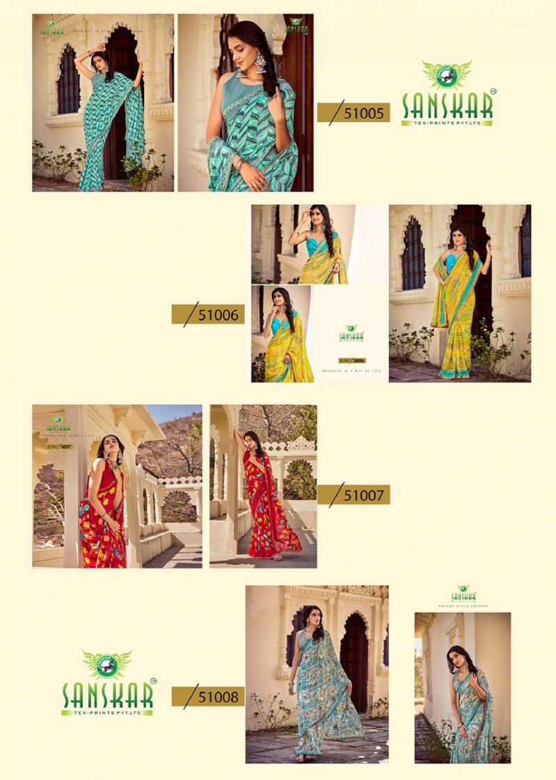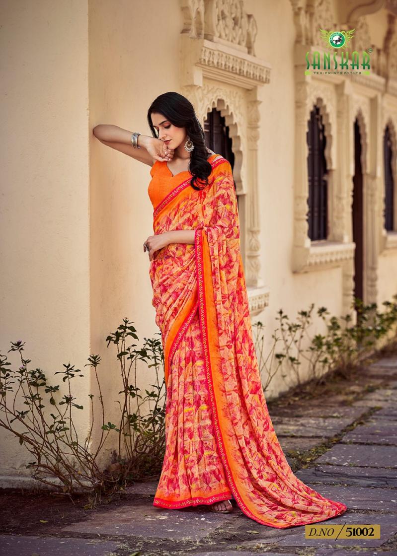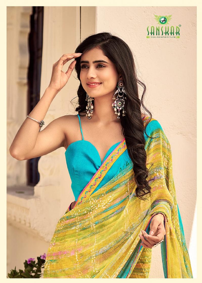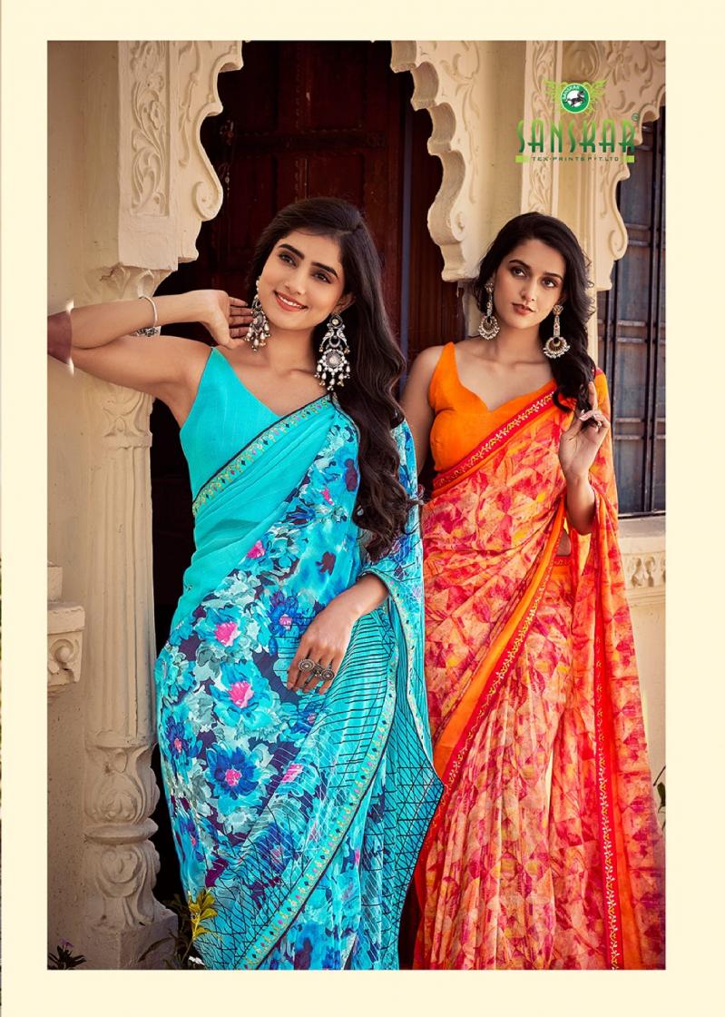 Looking for SANSKAR TEX PRINTS PARO CASUAL BEMBER GEORGETTE SAREE ONLINE Full Catalouge at Best Price? Buy Now SANSKAR TEX PRINTS PARO CASUAL BEMBER GEORGETTE SAREE ONLINE at Wholesale Rate of Rs 5360 with Total 8 Pcs from authroized dealer and supplier of Sanskar Tex Prints Brand. Cost of Each piece is just only Rs 670 which is very low and affordable price to resale the product in your retail store. rrgandhi is Surat based Wholesale Supplier & Dealer of Sanskar Tex Prints Brand. Click on Brand name to Know more about Brand's products.