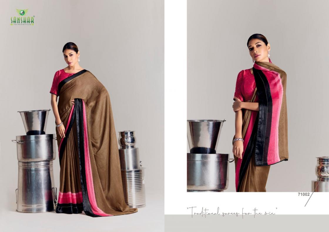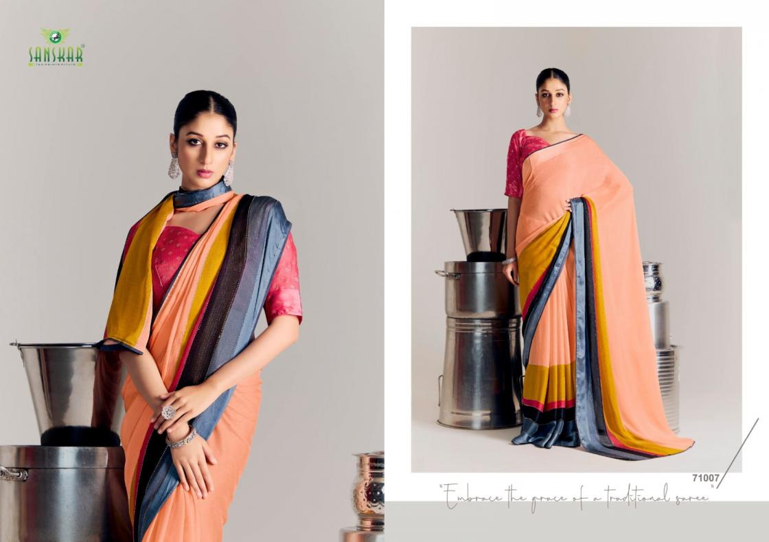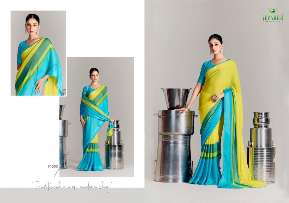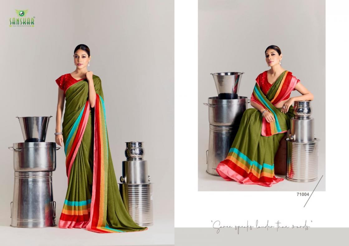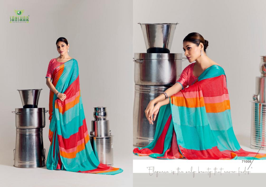 Looking for SANSKAR TEX PRINTS VEDANSI SATIN CHIFFON BEST SAREE ONLINE Full Catalouge at Best Price? Buy Now SANSKAR TEX PRINTS VEDANSI SATIN CHIFFON BEST SAREE ONLINE at Wholesale Rate of Rs 6200 with Total 8 Pcs from authroized dealer and supplier of Sanskar Tex Prints Brand. Cost of Each piece is just only Rs 775 which is very low and affordable price to resale the product in your retail store. rrgandhi is Surat based Wholesale Supplier & Dealer of Sanskar Tex Prints Brand. Click on Brand name to Know more about Brand's products.