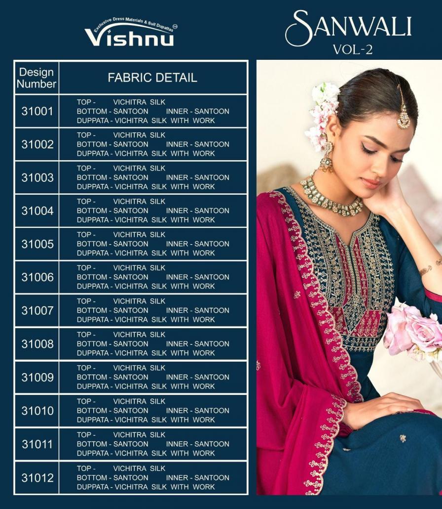 Looking for SANWALI VOL 2 BY VISHNU VICHITRA SILK FULL STITCH PLUS SIZE SUITS ONLINE Full Catalouge at Best Price? Buy Now SANWALI VOL 2 BY VISHNU VICHITRA SILK FULL STITCH PLUS SIZE SUITS ONLINE at Wholesale Rate of Rs 13740 with Total 12 Pcs from authroized dealer and supplier of Vishnu Brand. Cost of Each piece is just only Rs 1145 which is very low and affordable price to resale the product in your retail store. rrgandhi is Surat based Wholesale Supplier & Dealer of Vishnu Brand. Click on Brand name to Know more about Brand's products.