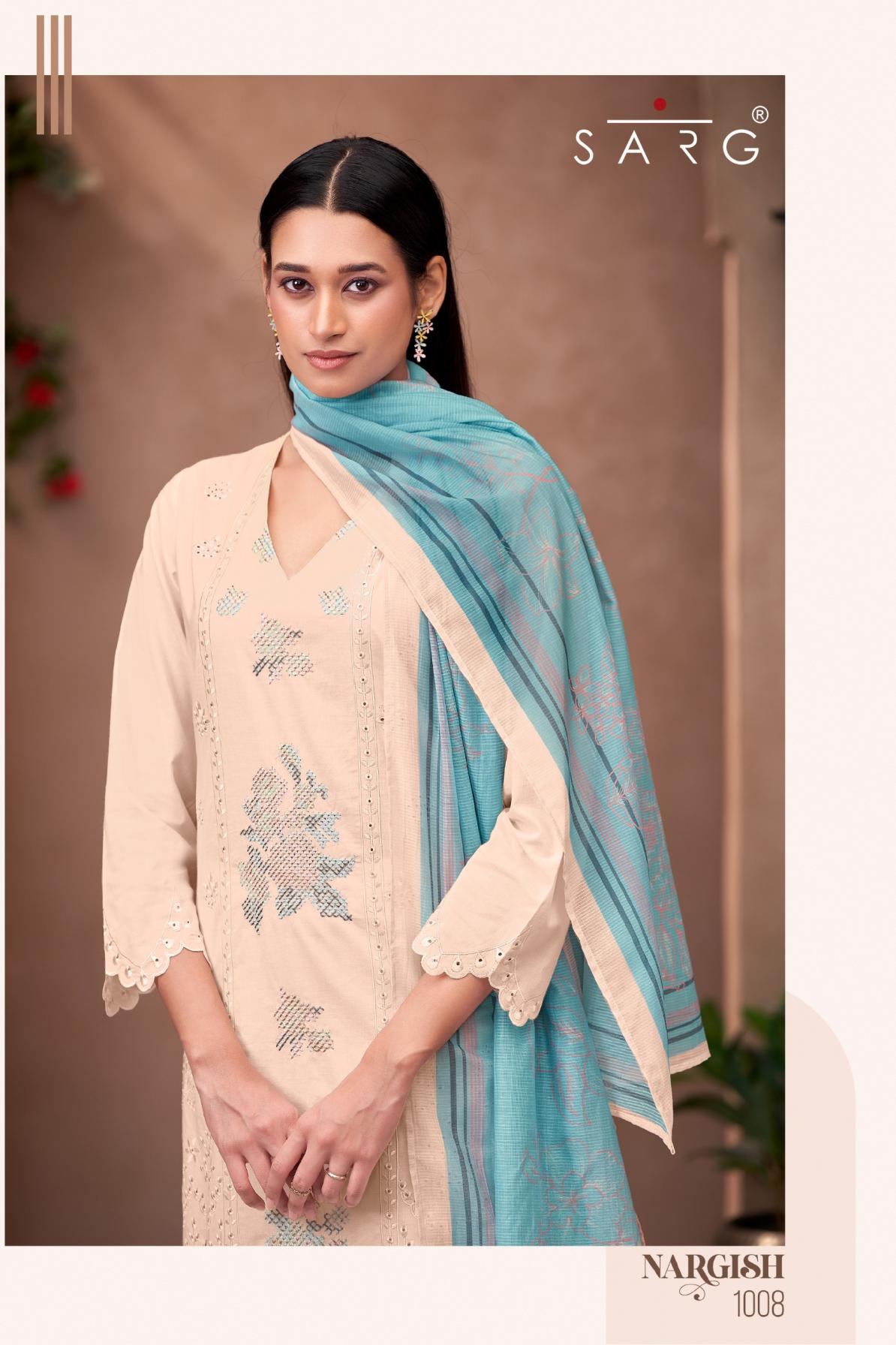 Looking for SARG SAHIBA PRESENTS NARGISH 3PCS UNSTITCH SALWAR SUIT Full Catalouge at Best Price? Buy Now SARG SAHIBA PRESENTS NARGISH 3PCS UNSTITCH SALWAR SUIT at Wholesale Rate of Rs 10770 with Total 6 Pcs from authroized dealer and supplier of Sahiba Brand. Cost of Each piece is just only Rs 1795 which is very low and affordable price to resale the product in your retail store. rrgandhi is Surat based Wholesale Supplier & Dealer of Sahiba Brand. Click on Brand name to Know more about Brand's products.