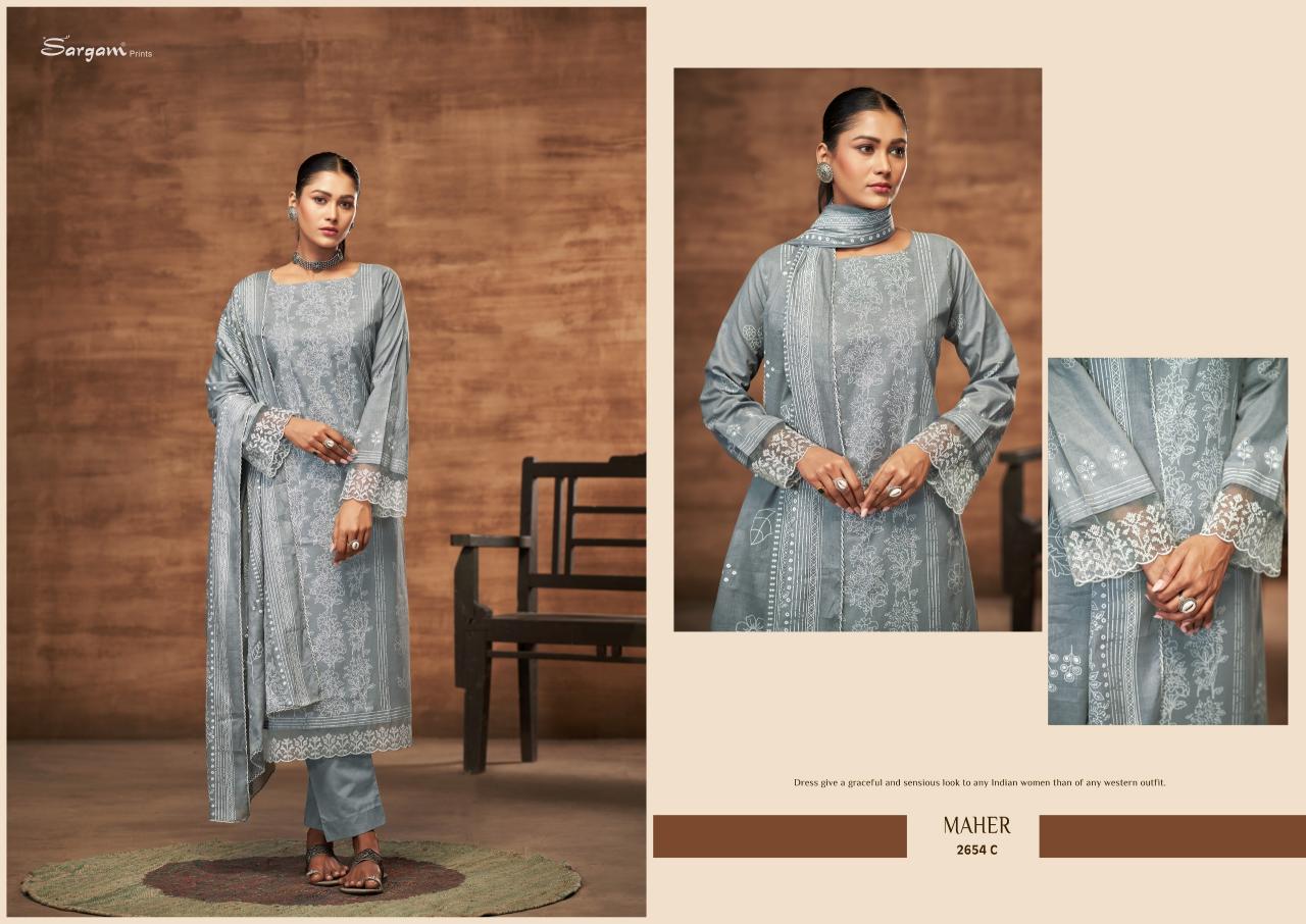 Looking for SARGAM MAHER CAMBRIC CASUAL WEAR SUMMER SALWAR KAMEEZ Full Catalouge at Best Price? Buy Now SARGAM MAHER CAMBRIC CASUAL WEAR SUMMER SALWAR KAMEEZ at Wholesale Rate of Rs 3700 with Total 4 Pcs from authroized dealer and supplier of Sargam Prints Brand. Cost of Each piece is just only Rs 925 which is very low and affordable price to resale the product in your retail store. rrgandhi is Surat based Wholesale Supplier & Dealer of Sargam Prints Brand. Click on Brand name to Know more about Brand's products.