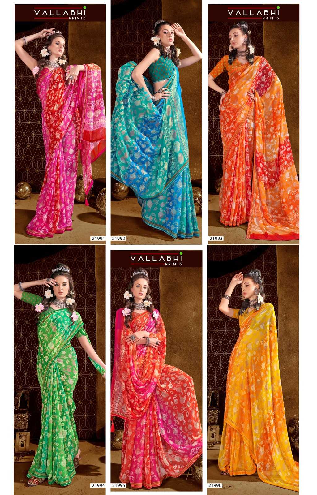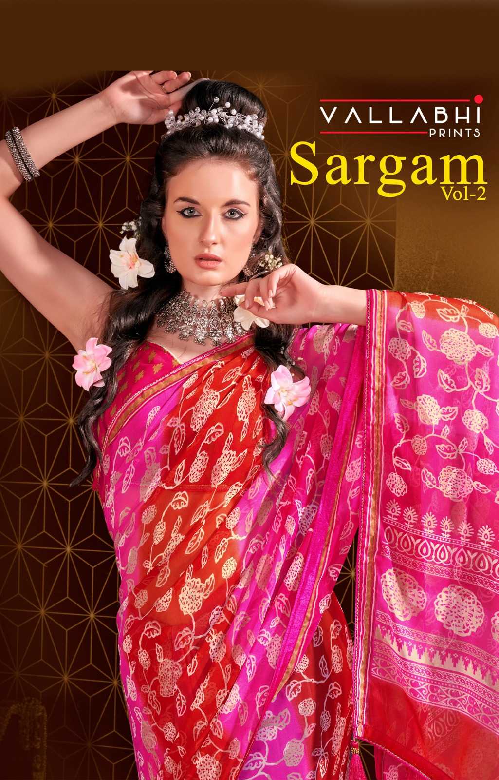 Looking for sargam vol 2 by vallabhi prints georgette unique print saree Full Catalouge at Best Price? Buy Now sargam vol 2 by vallabhi prints georgette unique print saree at Wholesale Rate of Rs 3210 with Total 6 Pcs from authroized dealer and supplier of Vallabhi Prints Brand. Cost of Each piece is just only Rs 535 which is very low and affordable price to resale the product in your retail store. rrgandhi is Surat based Wholesale Supplier & Dealer of Vallabhi Prints Brand. Click on Brand name to Know more about Brand's products.