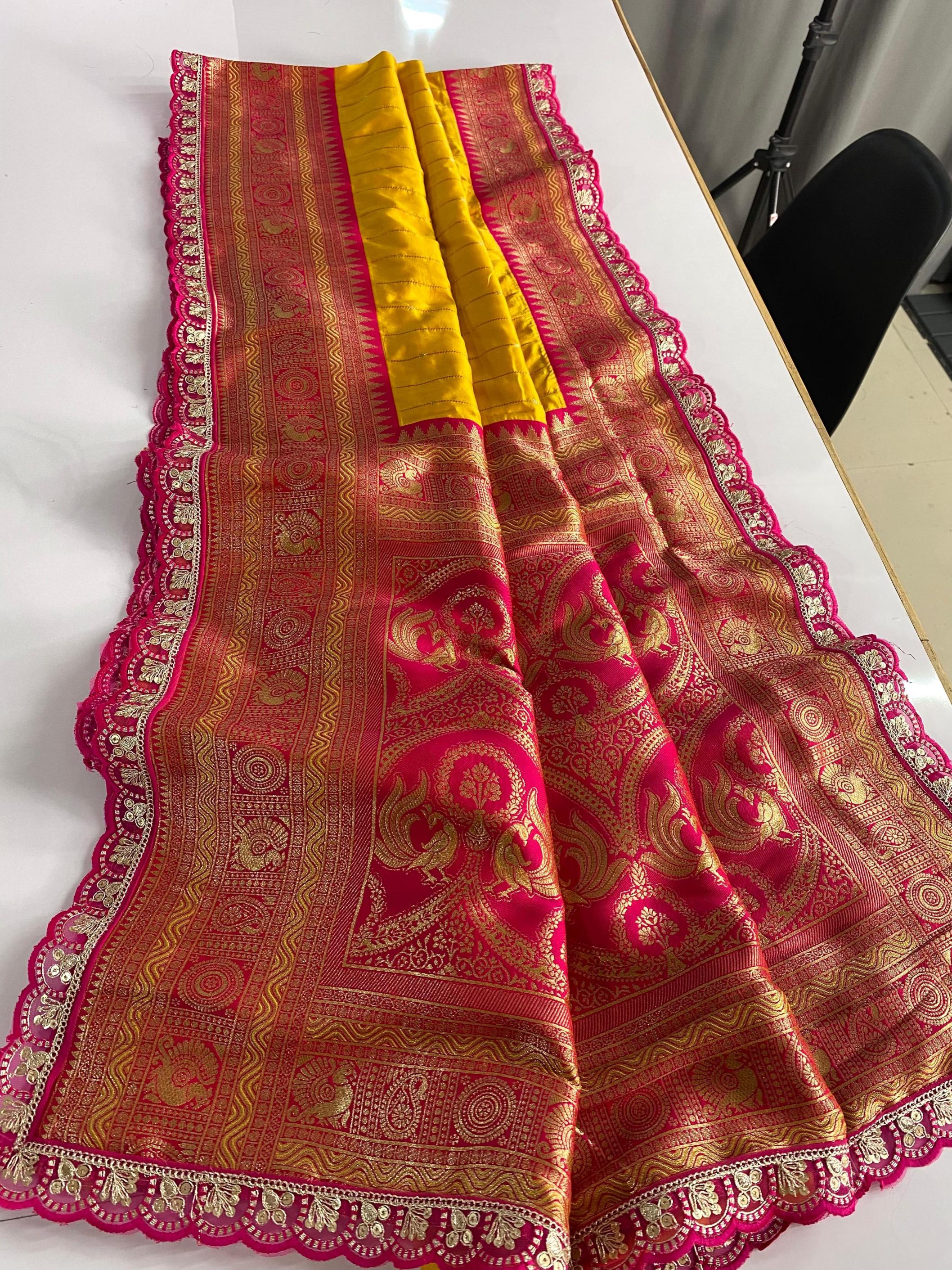 Looking for SARIKA LACE PAITHANI SILK FASHIONABLE SAREE FOR WOMEN Full Catalouge at Best Price? Buy Now SARIKA LACE PAITHANI SILK FASHIONABLE SAREE FOR WOMEN at Wholesale Rate of Rs 19000 with Total 10 Pcs from authroized dealer and supplier of P R Clothing Brand. Cost of Each piece is just only Rs 1900 which is very low and affordable price to resale the product in your retail store. rrgandhi is Surat based Wholesale Supplier & Dealer of P R Clothing Brand. Click on Brand name to Know more about Brand's products.