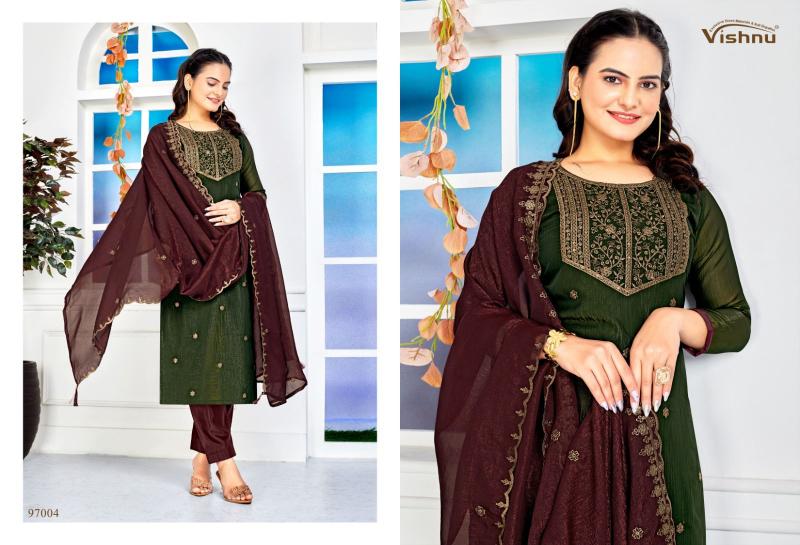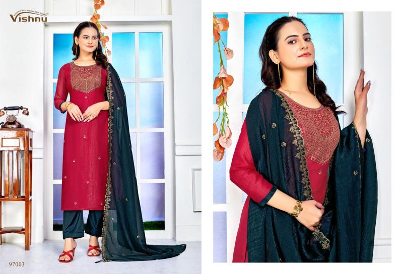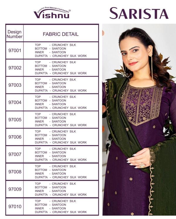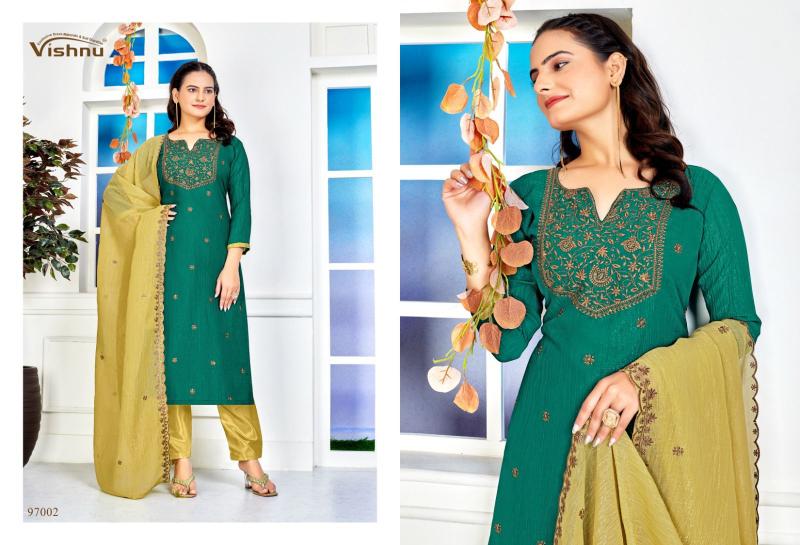 Looking for sarista by vishnu crunchey silk fully stitch classic salwar suit sets Full Catalouge at Best Price? Buy Now sarista by vishnu crunchey silk fully stitch classic salwar suit sets at Wholesale Rate of Rs 12450 with Total 10 Pcs from authroized dealer and supplier of Vishnu Brand. Cost of Each piece is just only Rs 1245 which is very low and affordable price to resale the product in your retail store. rrgandhi is Surat based Wholesale Supplier & Dealer of Vishnu Brand. Click on Brand name to Know more about Brand's products.