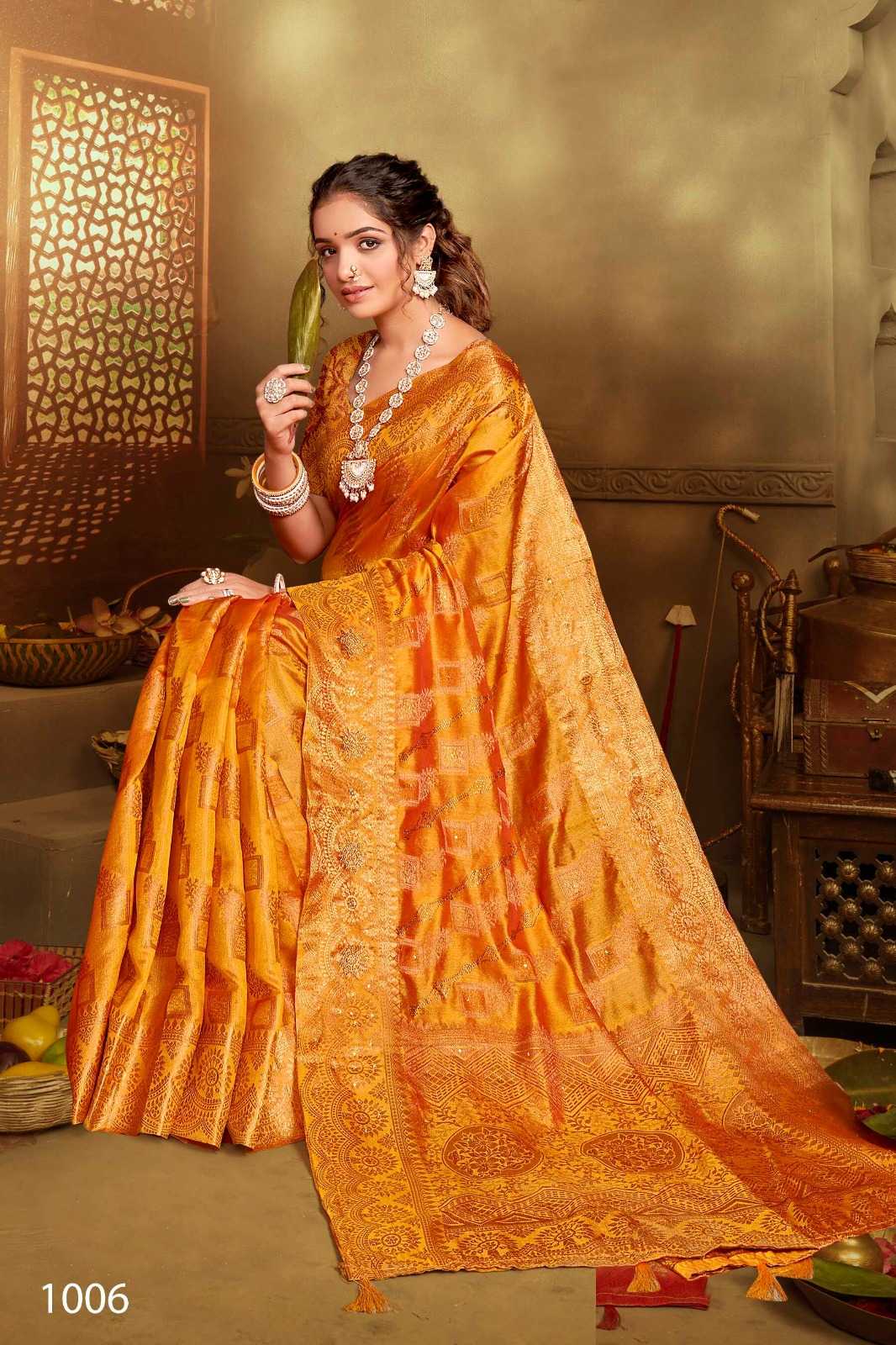 Looking for saroj gautami vol 2 organza fancy saree collection Full Catalouge at Best Price? Buy Now saroj gautami vol 2 organza fancy saree collection at Wholesale Rate of Rs 3090 with Total 6 Pcs from authroized dealer and supplier of Saroj Textiles Brand. Cost of Each piece is just only Rs 515 which is very low and affordable price to resale the product in your retail store. rrgandhi is Surat based Wholesale Supplier & Dealer of Saroj Textiles Brand. Click on Brand name to Know more about Brand's products.