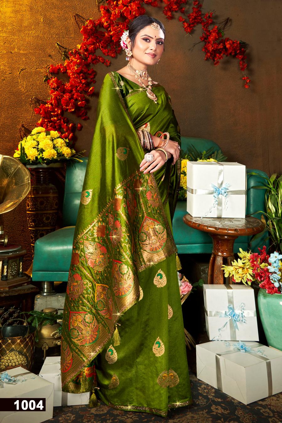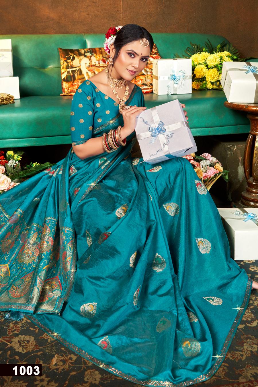 Looking for Saroj Maa sheetla saroski vol.3 soft dola silk saree Full Catalouge at Best Price? Buy Now Saroj Maa sheetla saroski vol.3 soft dola silk saree at Wholesale Rate of Rs 6630 with Total 6 Pcs from authroized dealer and supplier of Saroj Textiles Brand. Cost of Each piece is just only Rs 1105 which is very low and affordable price to resale the product in your retail store. rrgandhi is Surat based Wholesale Supplier & Dealer of Saroj Textiles Brand. Click on Brand name to Know more about Brand's products.
