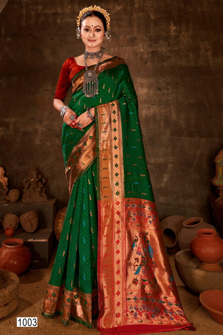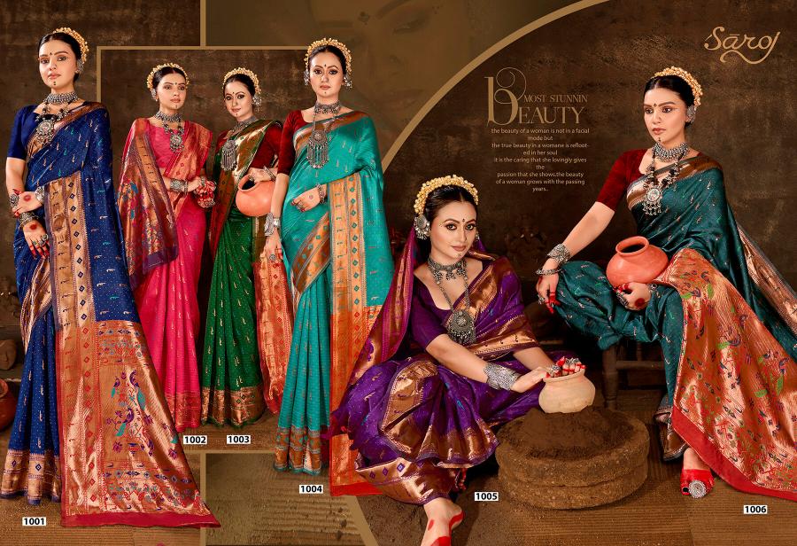 Looking for Saroj Morni silk Vol.4 Soft Paithani silk Full Catalouge at Best Price? Buy Now Saroj Morni silk Vol.4 Soft Paithani silk at Wholesale Rate of Rs 2610 with Total 6 Pcs from authroized dealer and supplier of Saroj Textiles Brand. Cost of Each piece is just only Rs 435 which is very low and affordable price to resale the product in your retail store. rrgandhi is Surat based Wholesale Supplier & Dealer of Saroj Textiles Brand. Click on Brand name to Know more about Brand's products.