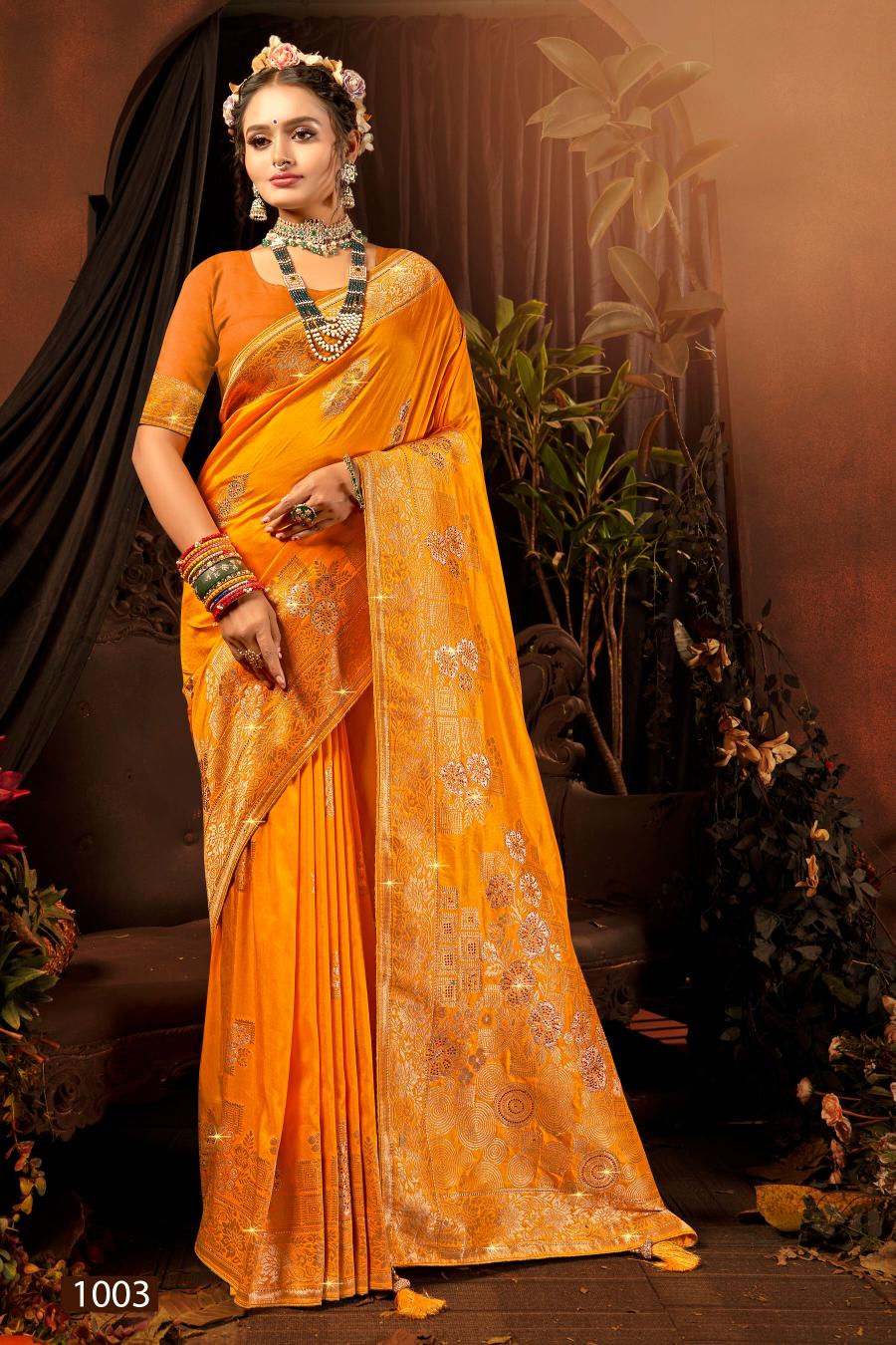 Looking for Saroj Nairaa Dola swarovski vol.7 Dola silk saree Full Catalouge at Best Price? Buy Now Saroj Nairaa Dola swarovski vol.7 Dola silk saree at Wholesale Rate of Rs 8070 with Total 6 Pcs from authroized dealer and supplier of Saroj Textiles Brand. Cost of Each piece is just only Rs 1345 which is very low and affordable price to resale the product in your retail store. rrgandhi is Surat based Wholesale Supplier & Dealer of Saroj Textiles Brand. Click on Brand name to Know more about Brand's products.