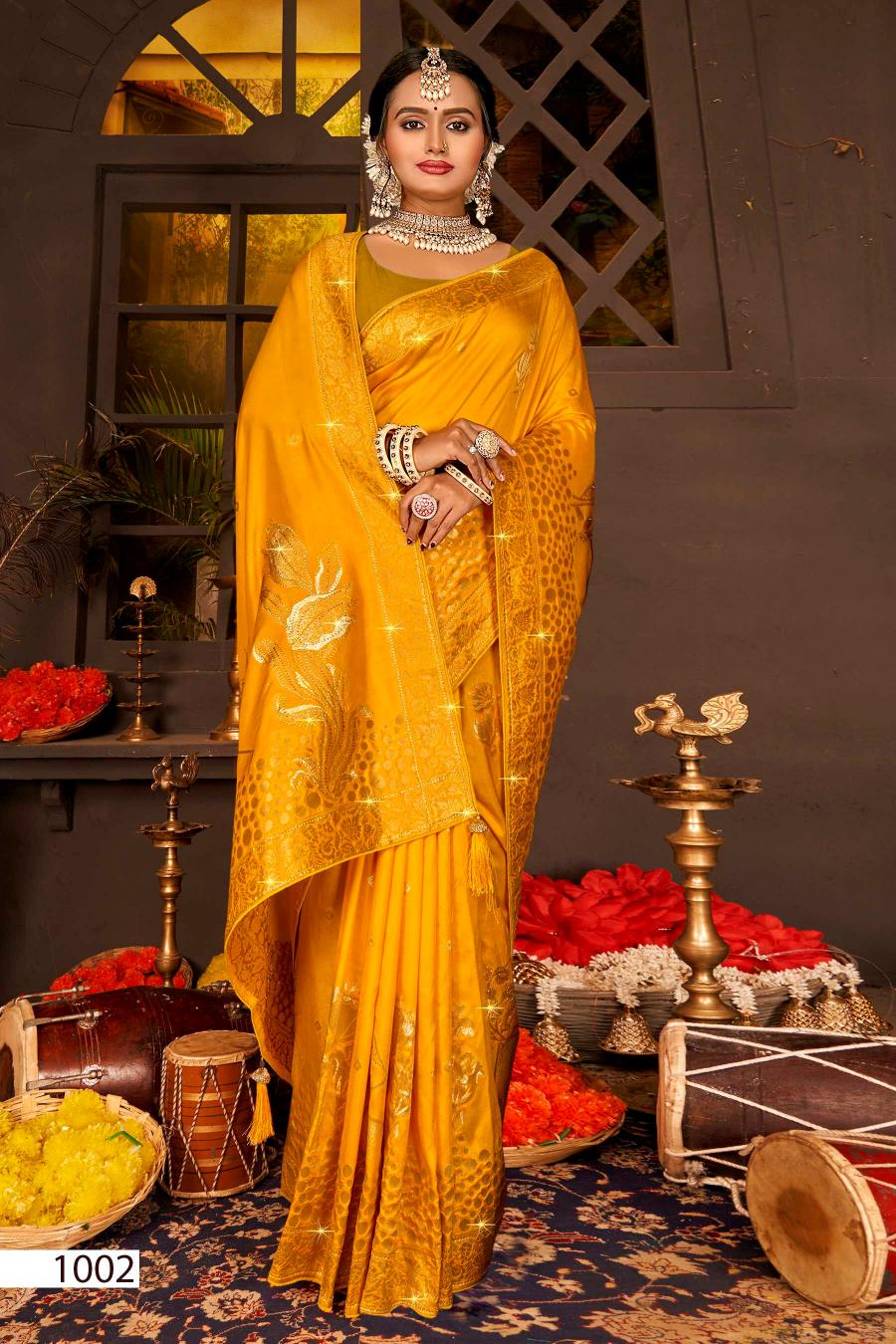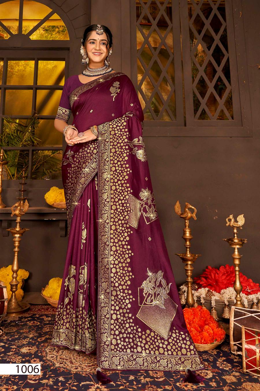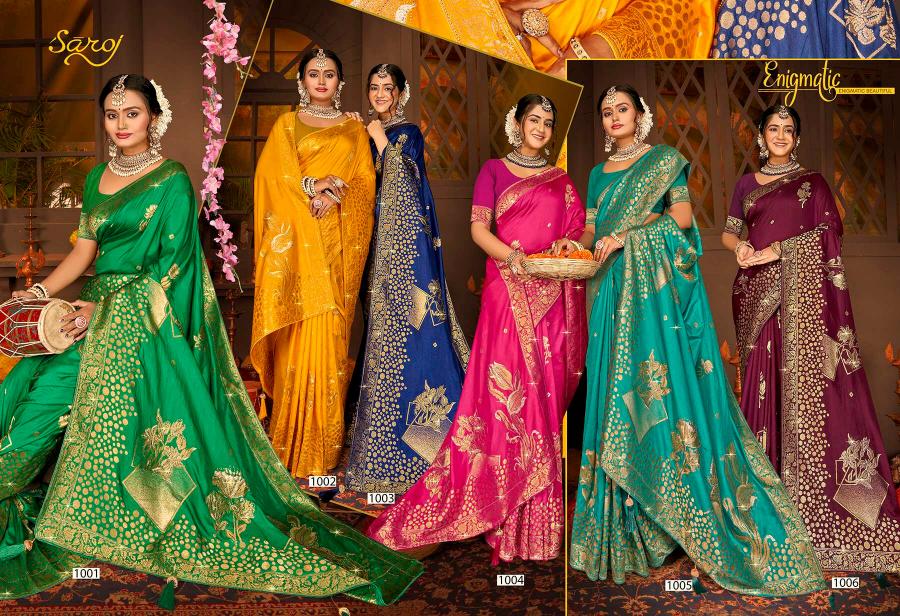 Looking for Saroj Nairaa Dola swarovski vol.8 Dola silk saree Full Catalouge at Best Price? Buy Now Saroj Nairaa Dola swarovski vol.8 Dola silk saree at Wholesale Rate of Rs 8070 with Total 6 Pcs from authroized dealer and supplier of Saroj Textiles Brand. Cost of Each piece is just only Rs 1345 which is very low and affordable price to resale the product in your retail store. rrgandhi is Surat based Wholesale Supplier & Dealer of Saroj Textiles Brand. Click on Brand name to Know more about Brand's products.