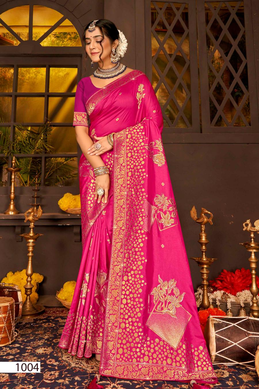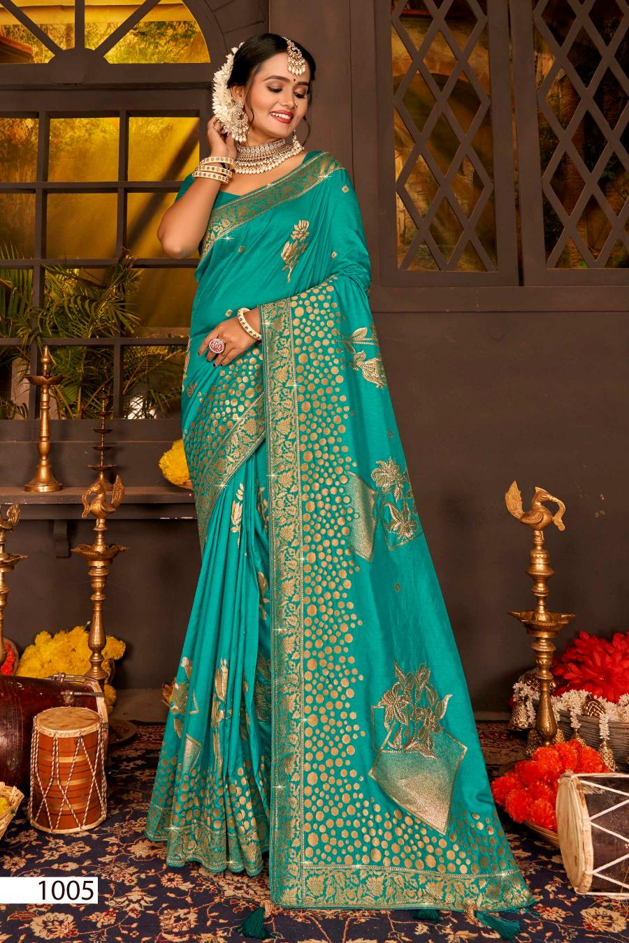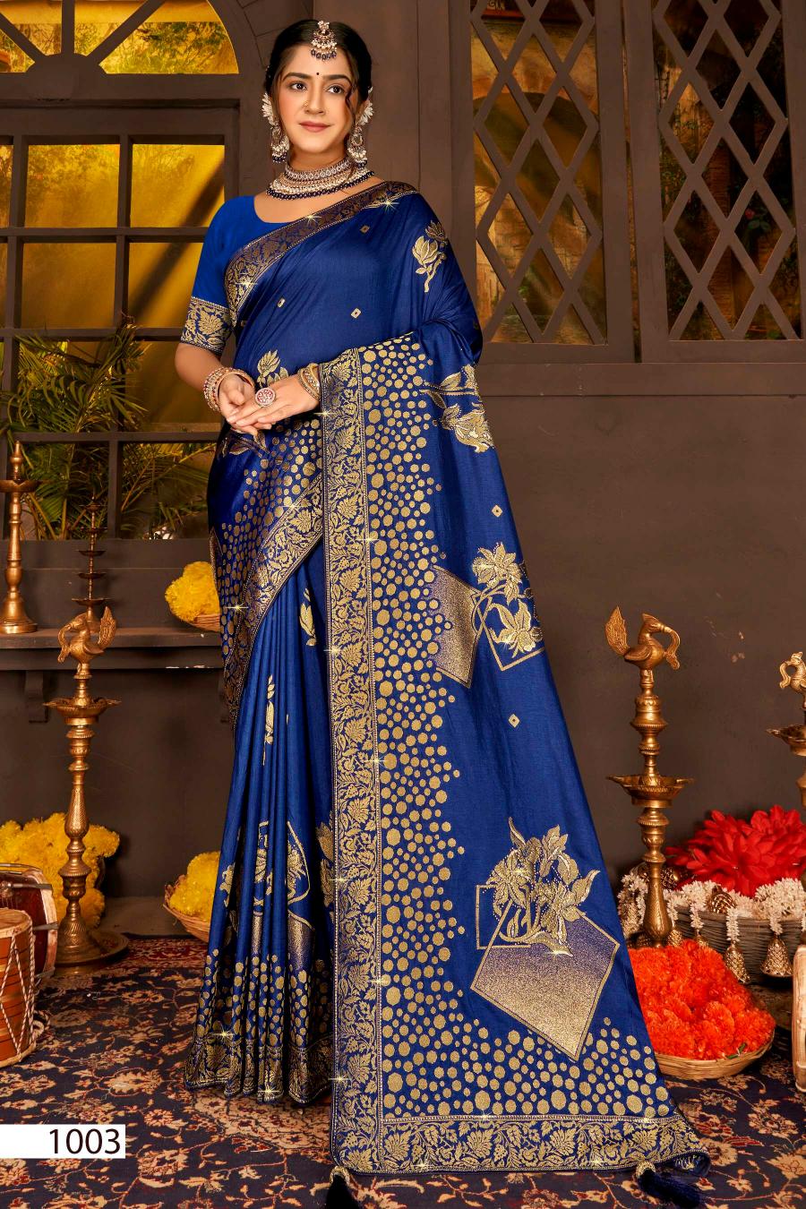Looking for Saroj Nairaa Dola swarovski vol.8 Dola silk saree Full Catalouge at Best Price? Buy Now Saroj Nairaa Dola swarovski vol.8 Dola silk saree at Wholesale Rate of Rs 8070 with Total 6 Pcs from authroized dealer and supplier of Saroj Textiles Brand. Cost of Each piece is just only Rs 1345 which is very low and affordable price to resale the product in your retail store. rrgandhi is Surat based Wholesale Supplier & Dealer of Saroj Textiles Brand. Click on Brand name to Know more about Brand's products.