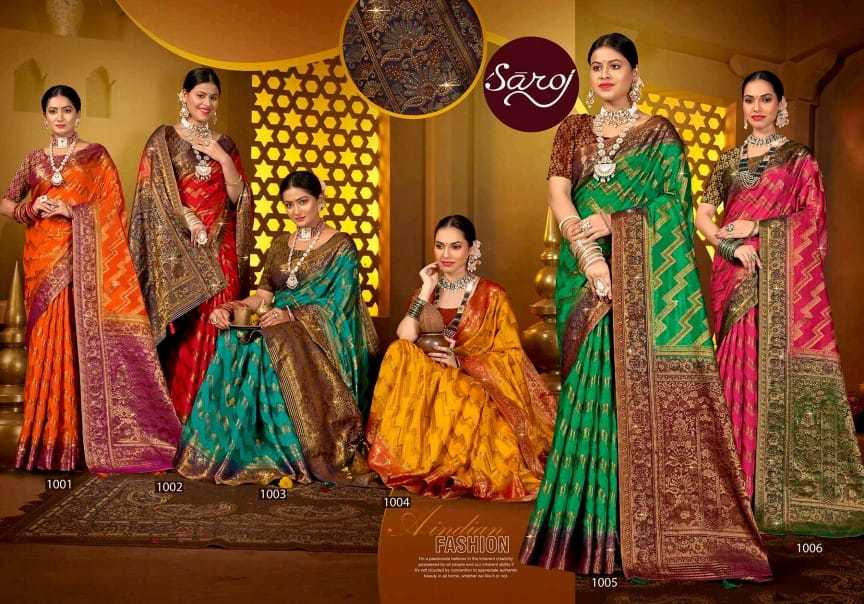 Looking for saroj tanak tara vol 4 amazing look dolla silk swarovski work online saree supplier Full Catalouge at Best Price? Buy Now saroj tanak tara vol 4 amazing look dolla silk swarovski work online saree supplier at Wholesale Rate of Rs 4620 with Total 6 Pcs from authroized dealer and supplier of Saroj Textiles Brand. Cost of Each piece is just only Rs 770 which is very low and affordable price to resale the product in your retail store. rrgandhi is Surat based Wholesale Supplier & Dealer of Saroj Textiles Brand. Click on Brand name to Know more about Brand's products.