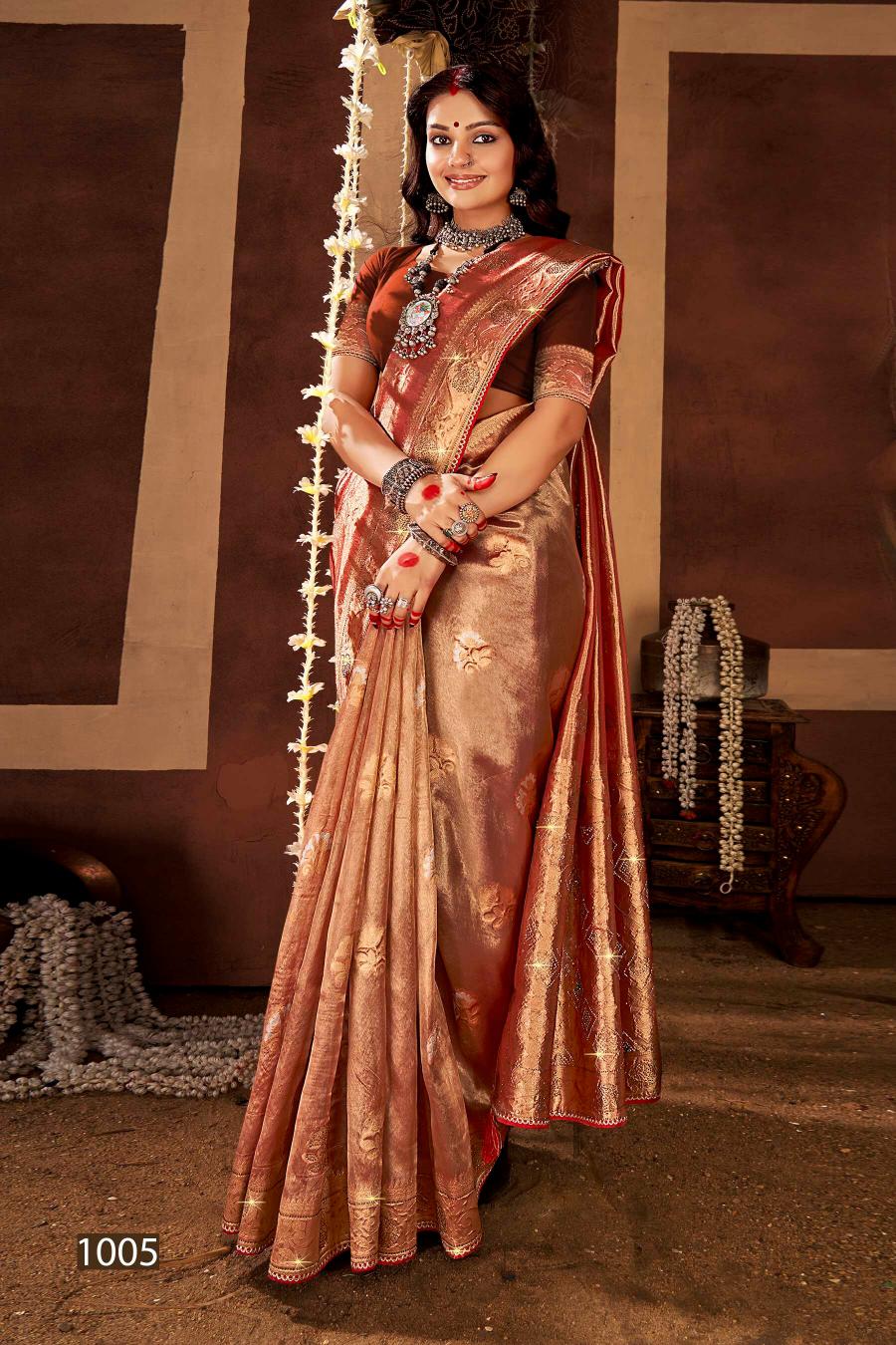 Looking for Satrani tissue jharkan Saroj vol.1 organza silk saree Full Catalouge at Best Price? Buy Now Satrani tissue jharkan Saroj vol.1 organza silk saree at Wholesale Rate of Rs 9990 with Total 6 Pcs from authroized dealer and supplier of Saroj Textiles Brand. Cost of Each piece is just only Rs 1665 which is very low and affordable price to resale the product in your retail store. rrgandhi is Surat based Wholesale Supplier & Dealer of Saroj Textiles Brand. Click on Brand name to Know more about Brand's products.