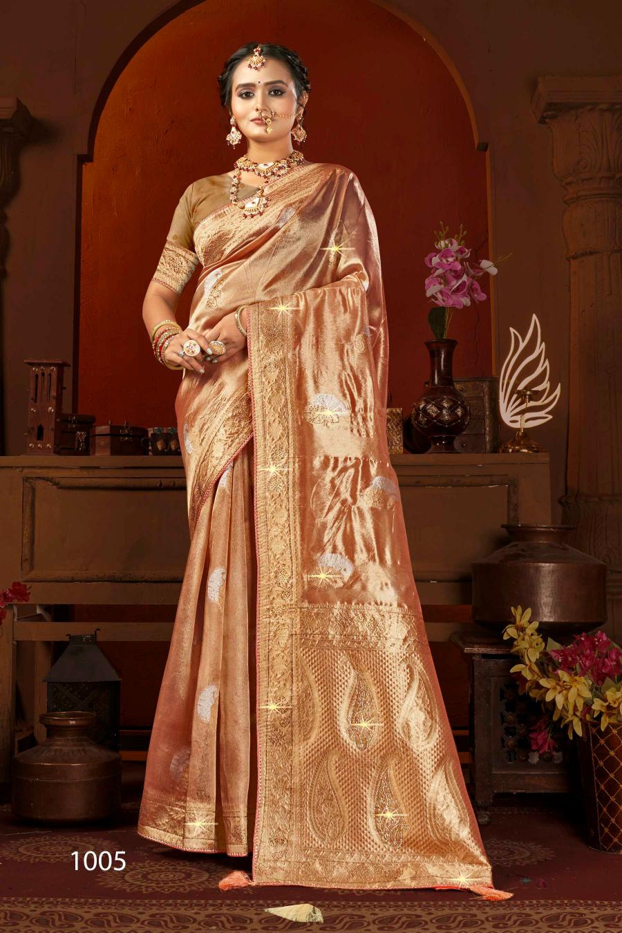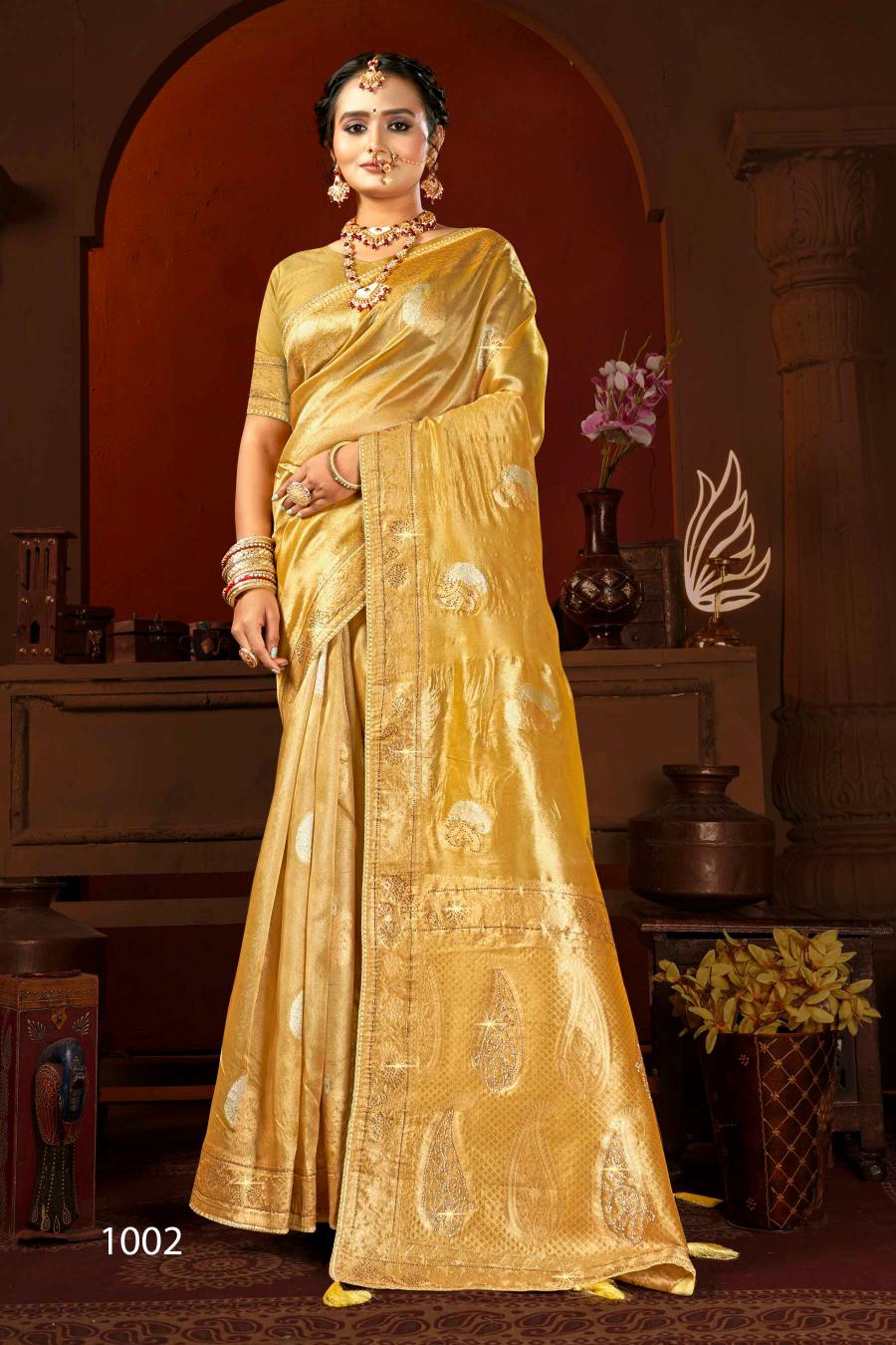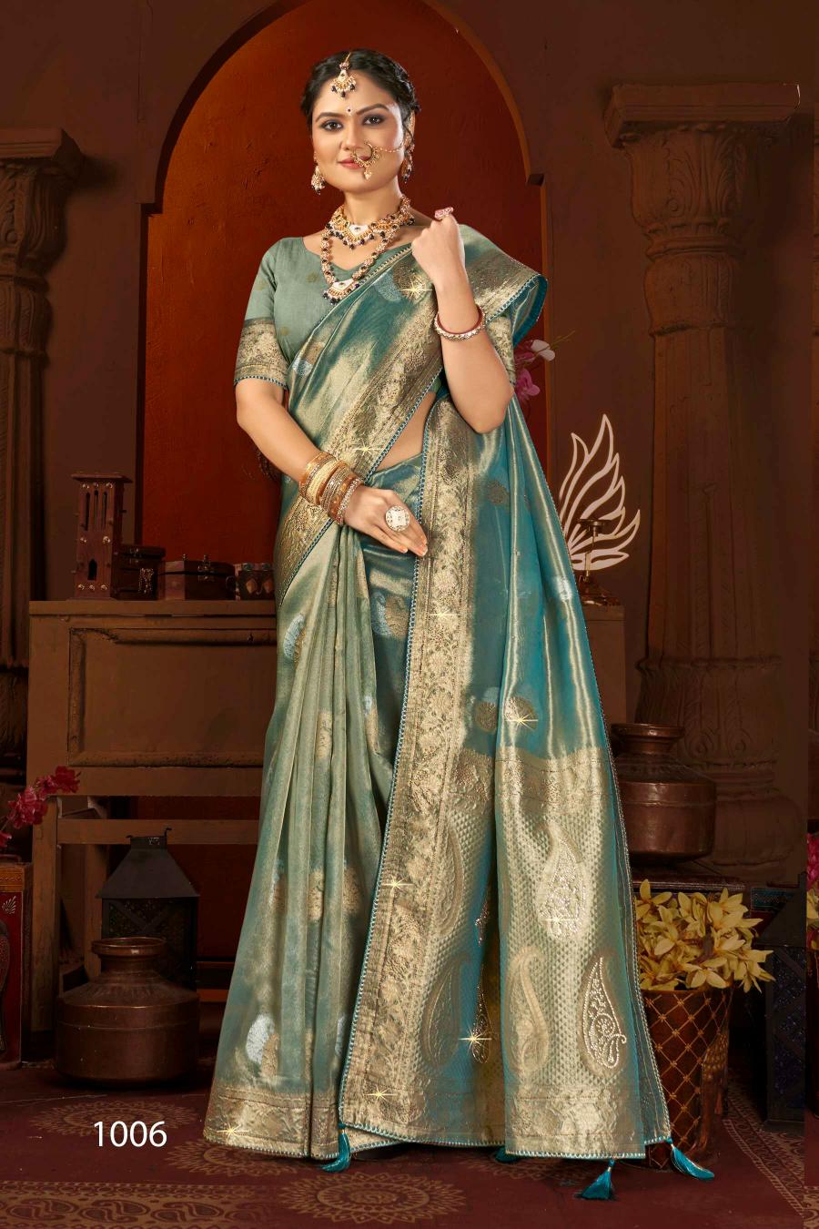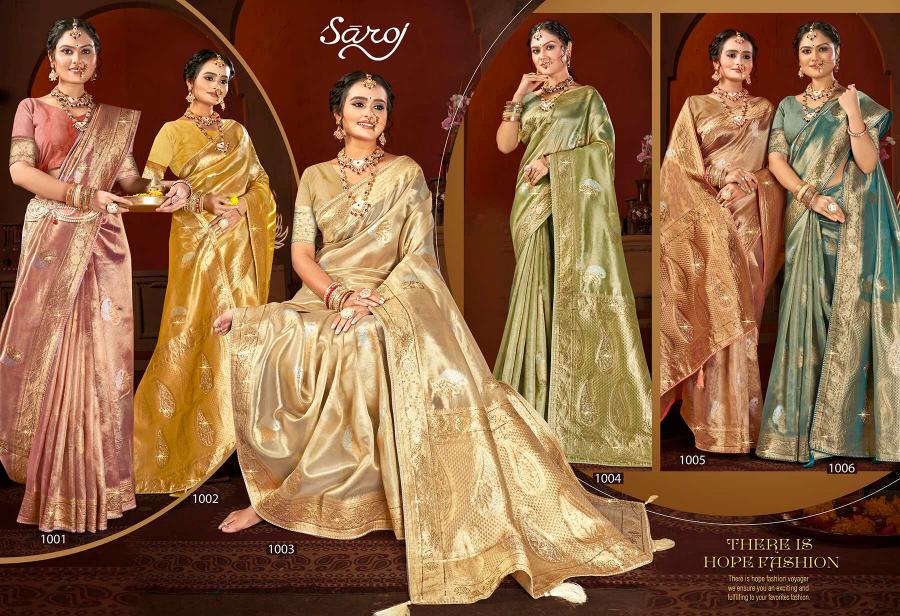 Looking for Satrani tissue jharkan Saroj vol.6 organza silk saree Full Catalouge at Best Price? Buy Now Satrani tissue jharkan Saroj vol.6 organza silk saree at Wholesale Rate of Rs 9990 with Total 6 Pcs from authroized dealer and supplier of Saroj Textiles Brand. Cost of Each piece is just only Rs 1665 which is very low and affordable price to resale the product in your retail store. rrgandhi is Surat based Wholesale Supplier & Dealer of Saroj Textiles Brand. Click on Brand name to Know more about Brand's products.