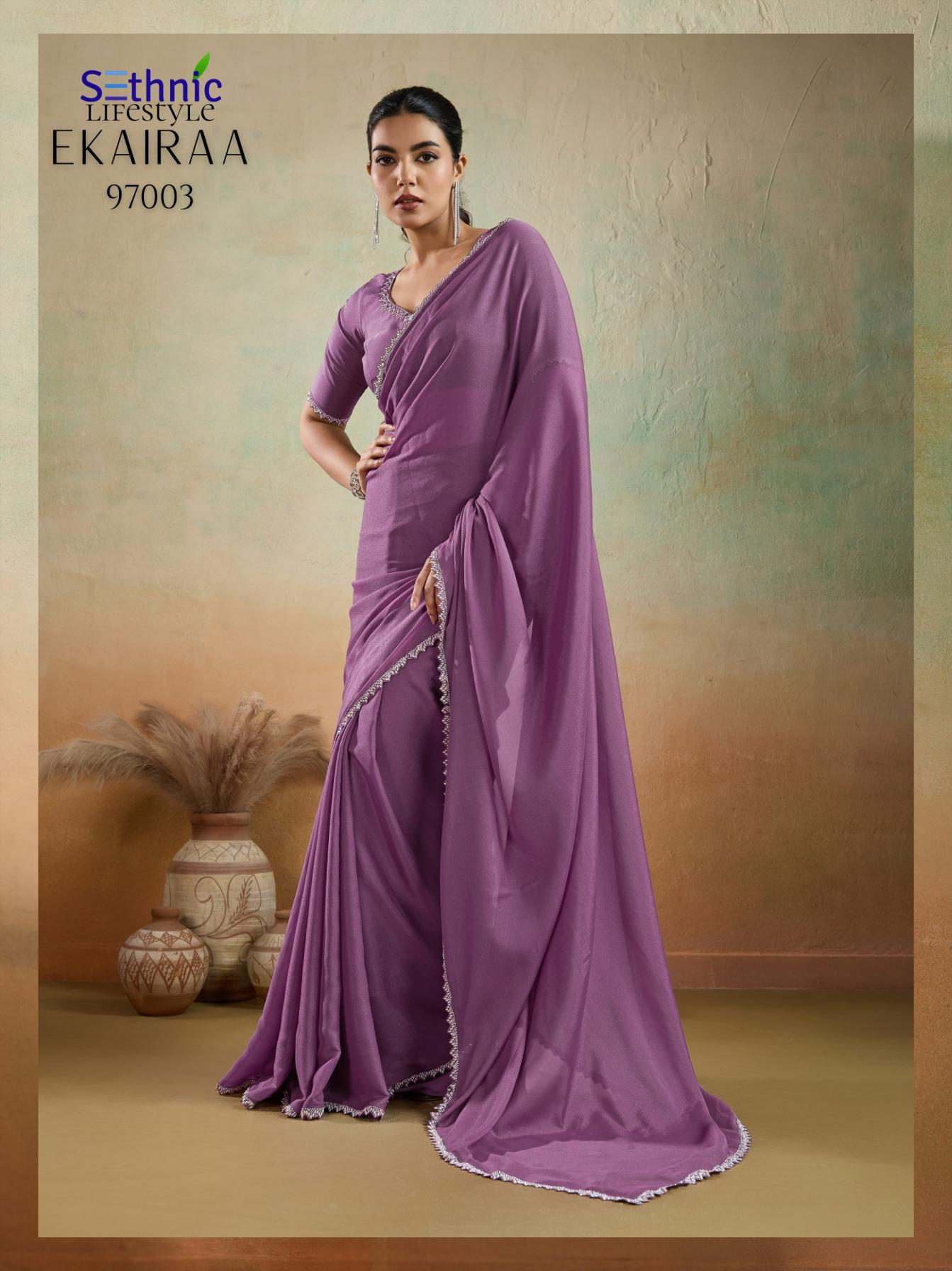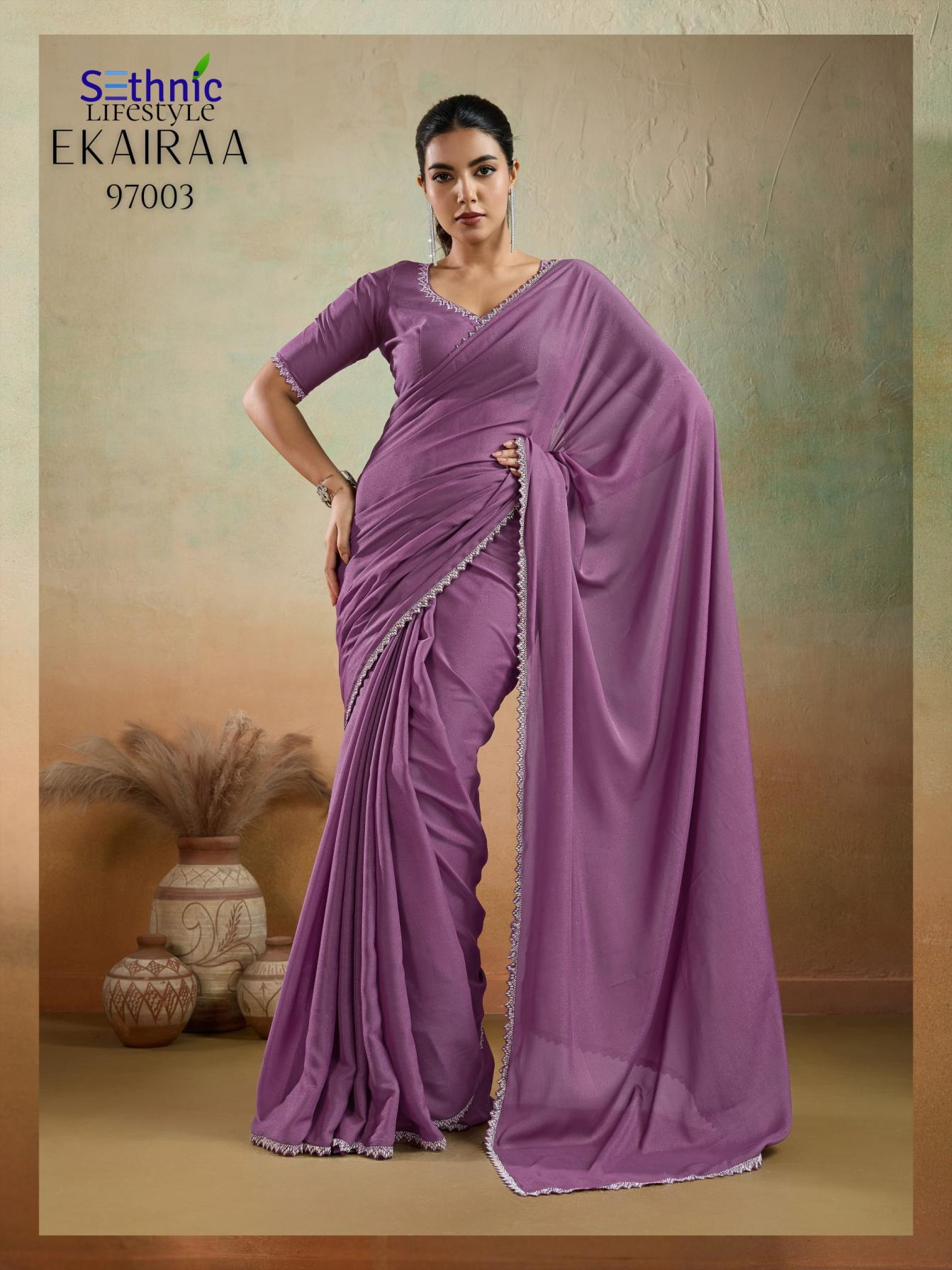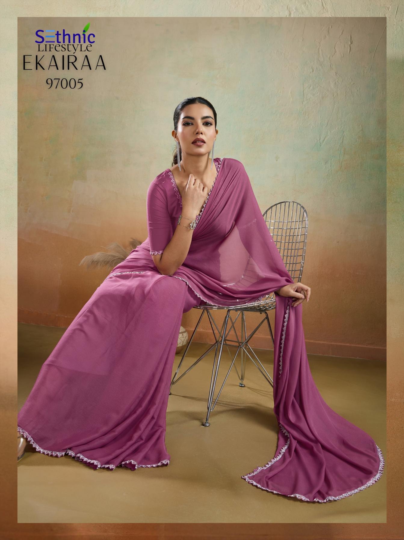 Looking for SETHNIC LIFESTYLE EKAIRAA DESIGNER MATT GEORGETTE SAREES Full Catalouge at Best Price? Buy Now SETHNIC LIFESTYLE EKAIRAA DESIGNER MATT GEORGETTE SAREES at Wholesale Rate of Rs 4495 with Total 5 Pcs from authroized dealer and supplier of Sethnic Lifestyle Brand. Cost of Each piece is just only Rs 899 which is very low and affordable price to resale the product in your retail store. rrgandhi is Surat based Wholesale Supplier & Dealer of Sethnic Lifestyle Brand. Click on Brand name to Know more about Brand's products.