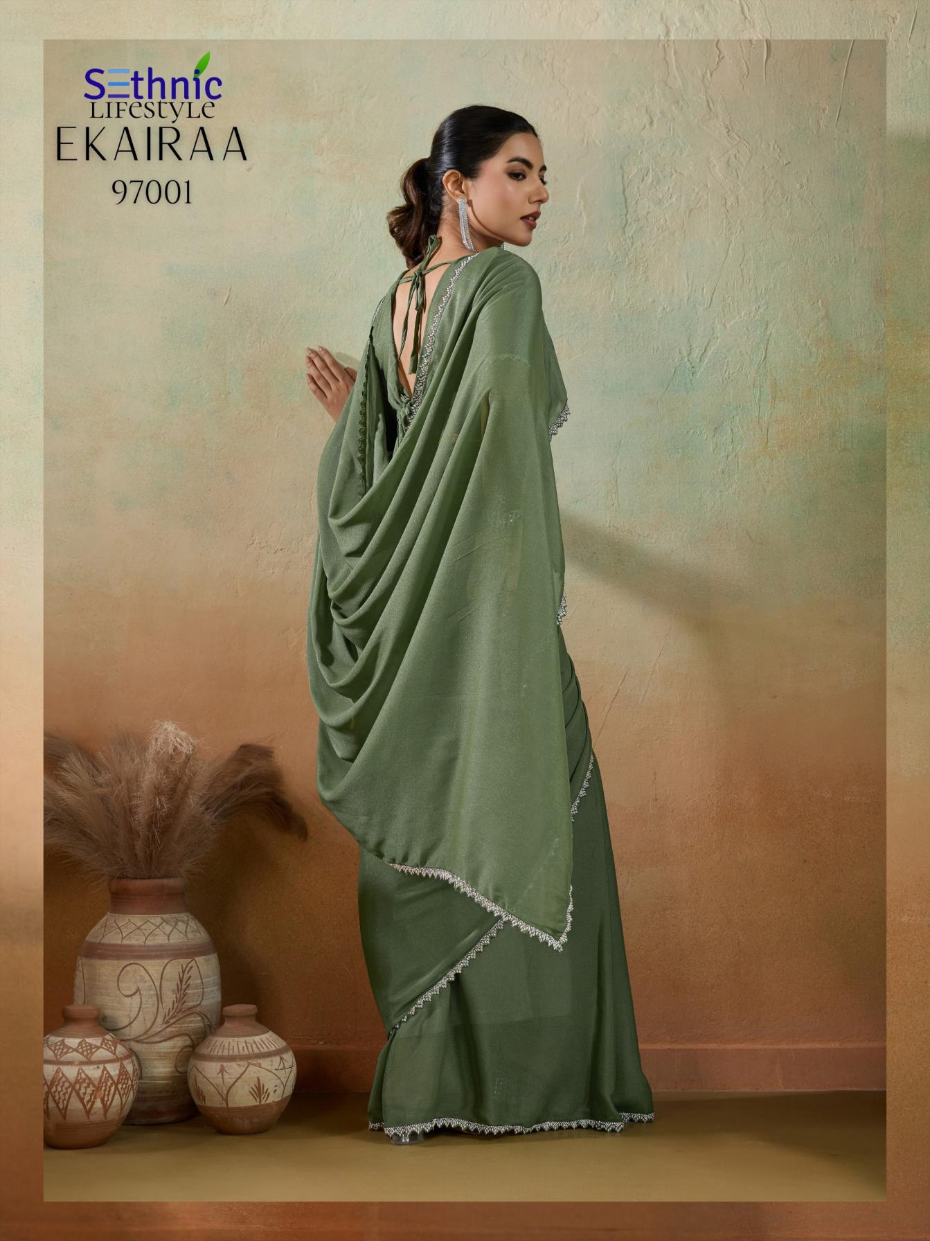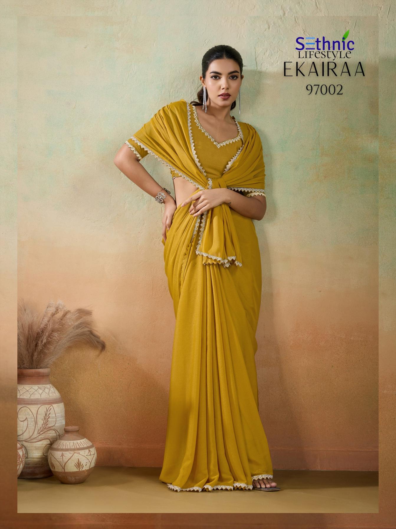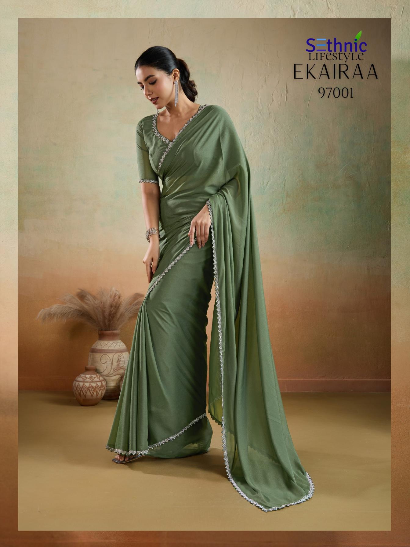 Looking for SETHNIC LIFESTYLE EKAIRAA DESIGNER MATT GEORGETTE SAREES Full Catalouge at Best Price? Buy Now SETHNIC LIFESTYLE EKAIRAA DESIGNER MATT GEORGETTE SAREES at Wholesale Rate of Rs 4495 with Total 5 Pcs from authroized dealer and supplier of Sethnic Lifestyle Brand. Cost of Each piece is just only Rs 899 which is very low and affordable price to resale the product in your retail store. rrgandhi is Surat based Wholesale Supplier & Dealer of Sethnic Lifestyle Brand. Click on Brand name to Know more about Brand's products.