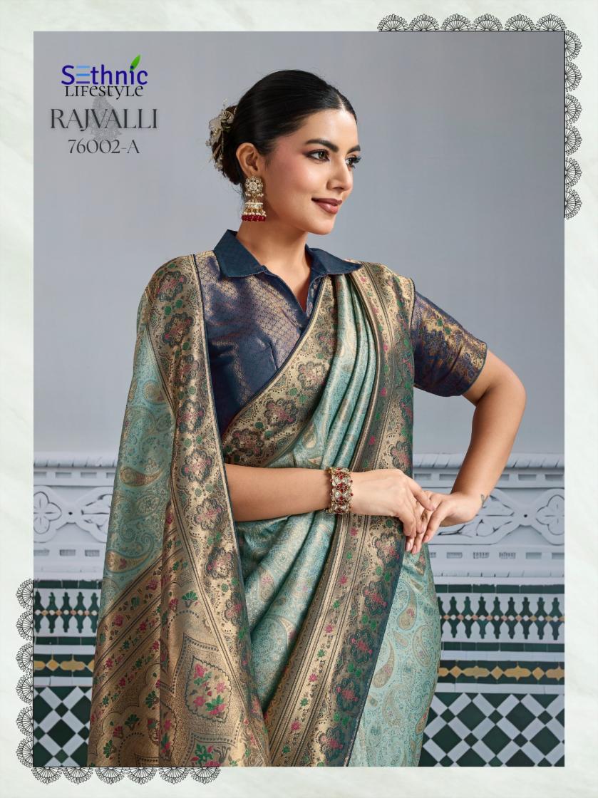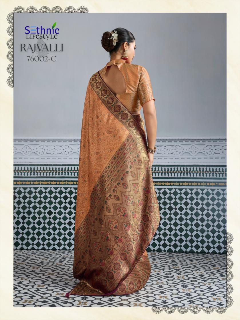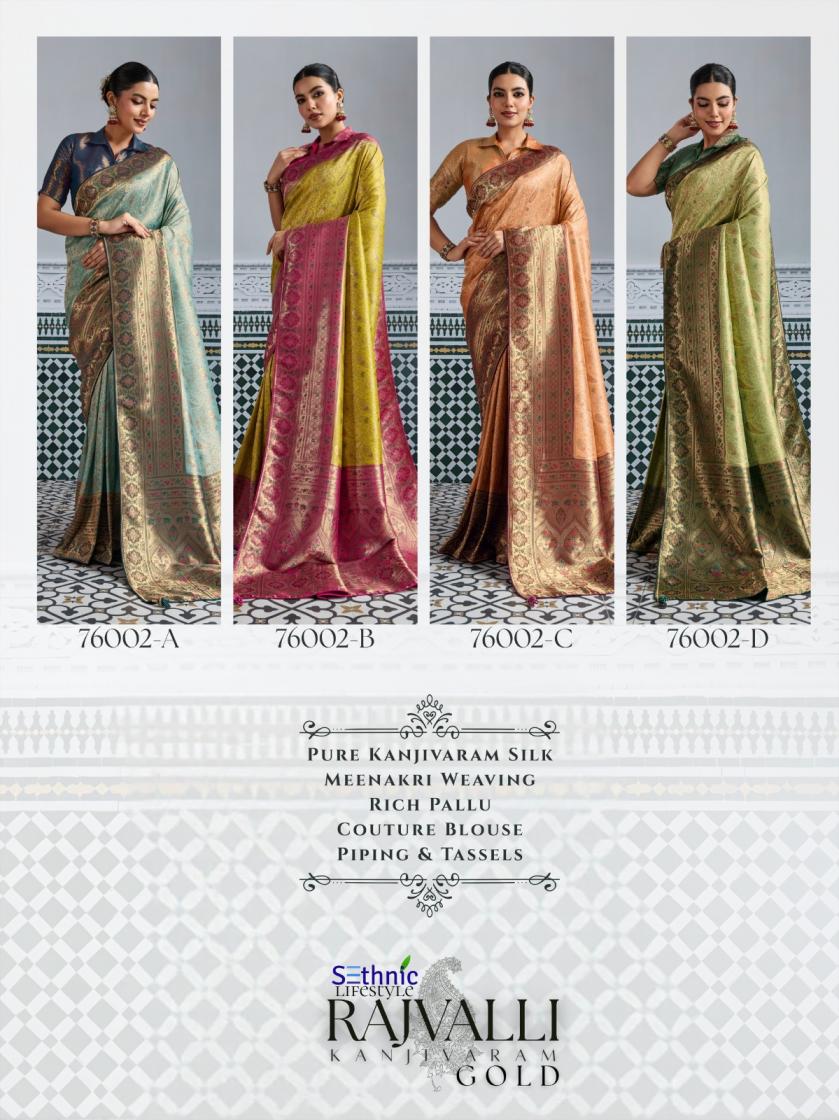 Looking for SETHNIC LIFESTYLE RAJVALLI PLATINUM AMAZING KANJIVARAM SILK SAREES Full Catalouge at Best Price? Buy Now SETHNIC LIFESTYLE RAJVALLI PLATINUM AMAZING KANJIVARAM SILK SAREES at Wholesale Rate of Rs 8780 with Total 4 Pcs from authroized dealer and supplier of Sethnic Lifestyle Brand. Cost of Each piece is just only Rs 2195 which is very low and affordable price to resale the product in your retail store. rrgandhi is Surat based Wholesale Supplier & Dealer of Sethnic Lifestyle Brand. Click on Brand name to Know more about Brand's products.