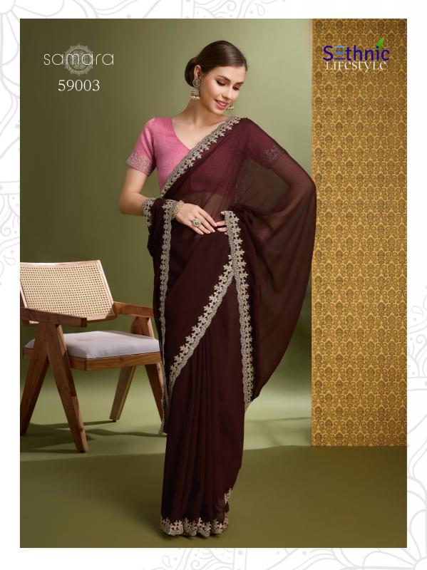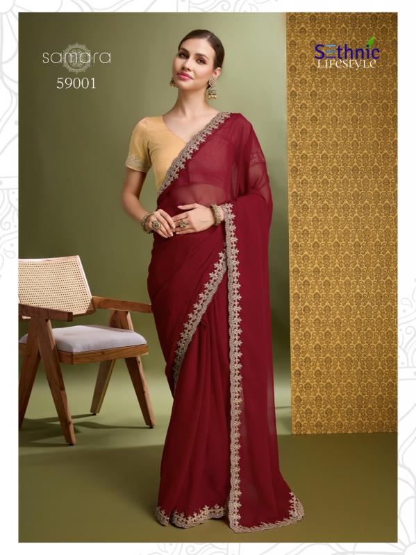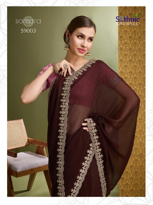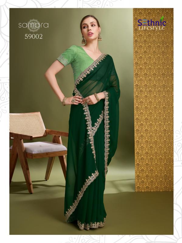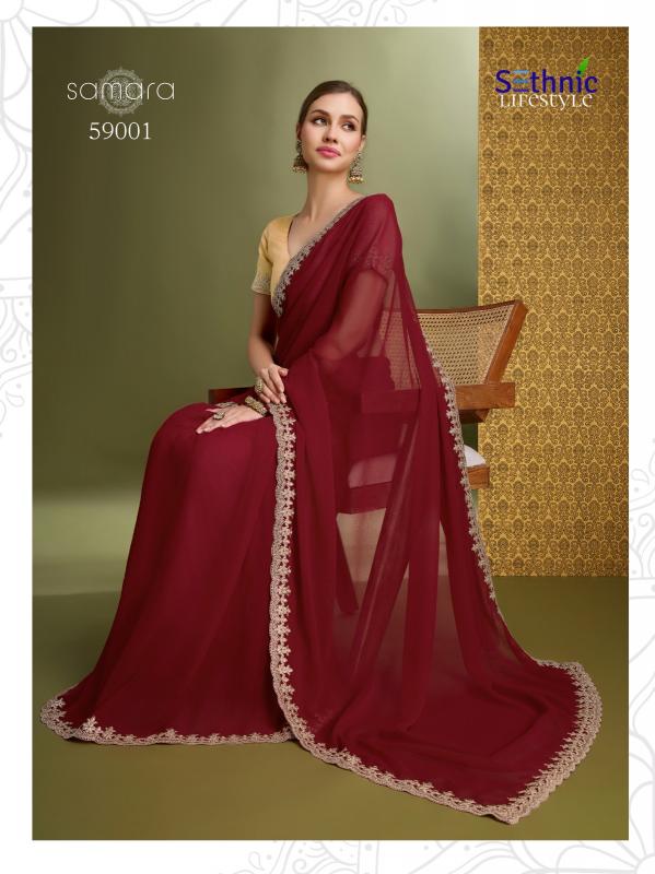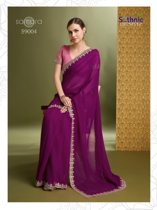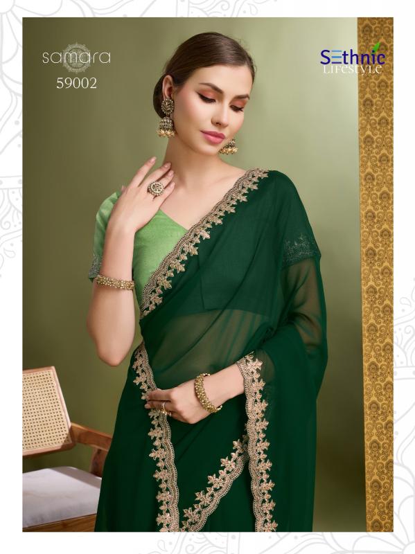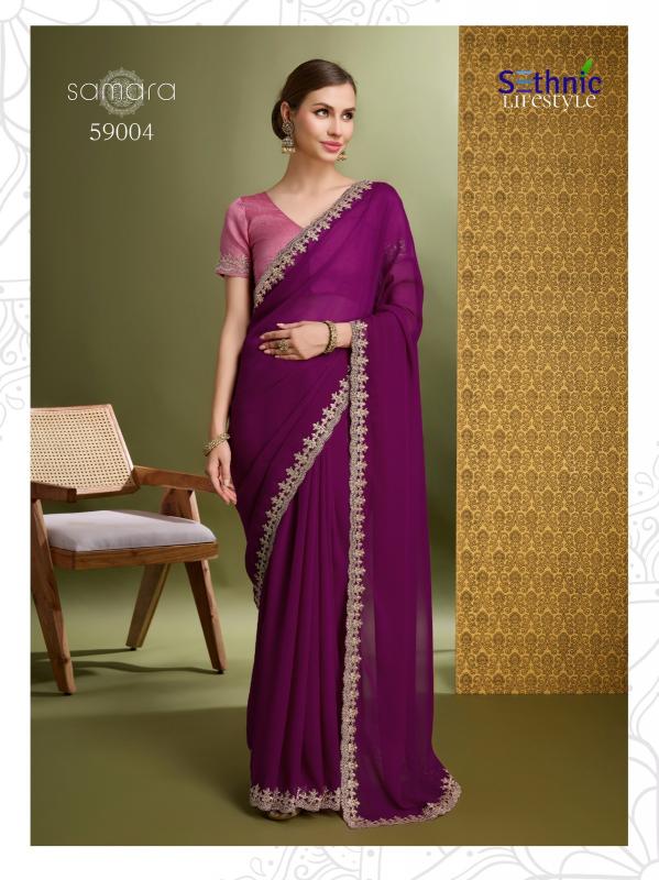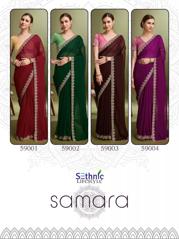 Looking for sethnic lifestyle samara 59001-59004 pretty look georgette saree with blouse Full Catalouge at Best Price? Buy Now sethnic lifestyle samara 59001-59004 pretty look georgette saree with blouse at Wholesale Rate of Rs 3796 with Total 4 Pcs from authroized dealer and supplier of Sethnic Lifestyle Brand. Cost of Each piece is just only Rs 949 which is very low and affordable price to resale the product in your retail store. rrgandhi is Surat based Wholesale Supplier & Dealer of Sethnic Lifestyle Brand. Click on Brand name to Know more about Brand's products.