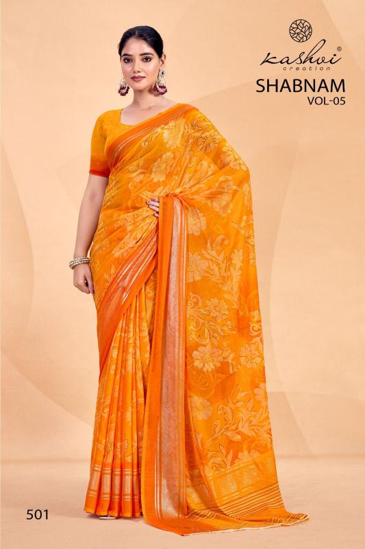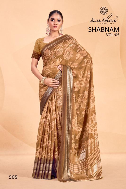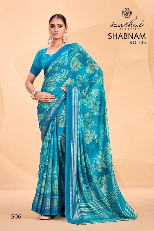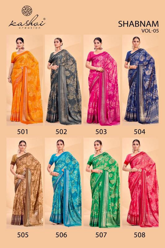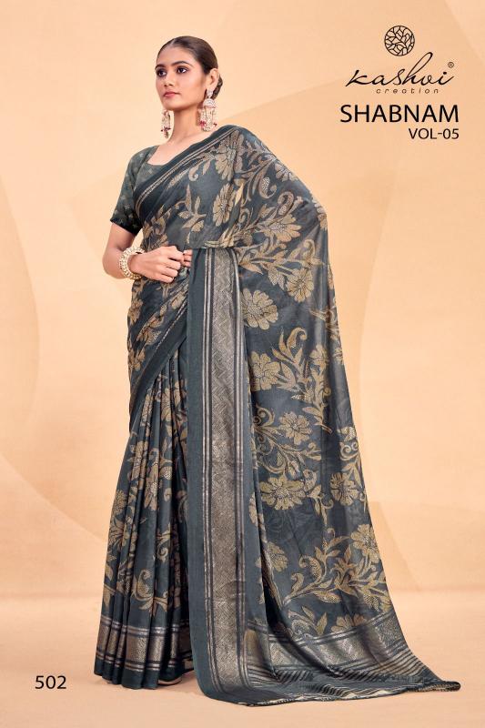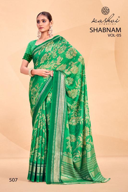Looking for shabnam vol 5 by kashvi creation dull moss casual saree Full Catalouge at Best Price? Buy Now shabnam vol 5 by kashvi creation dull moss casual saree at Wholesale Rate of Rs 4360 with Total 8 Pcs from authroized dealer and supplier of Kashvi Creation Brand. Cost of Each piece is just only Rs 545 which is very low and affordable price to resale the product in your retail store. rrgandhi is Surat based Wholesale Supplier & Dealer of Kashvi Creation Brand. Click on Brand name to Know more about Brand's products.