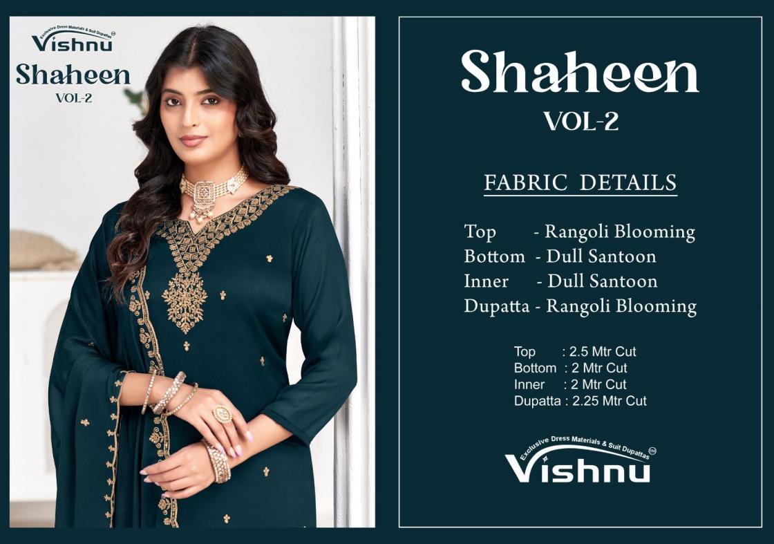 Looking for SHAHEEN VOL 2 BY VISHNU RANGOLI BLOOMING 3PCS DRESS ONLINE Full Catalouge at Best Price? Buy Now SHAHEEN VOL 2 BY VISHNU RANGOLI BLOOMING 3PCS DRESS ONLINE at Wholesale Rate of Rs 10200 with Total 12 Pcs from authroized dealer and supplier of Vishnu Brand. Cost of Each piece is just only Rs 850 which is very low and affordable price to resale the product in your retail store. rrgandhi is Surat based Wholesale Supplier & Dealer of Vishnu Brand. Click on Brand name to Know more about Brand's products.