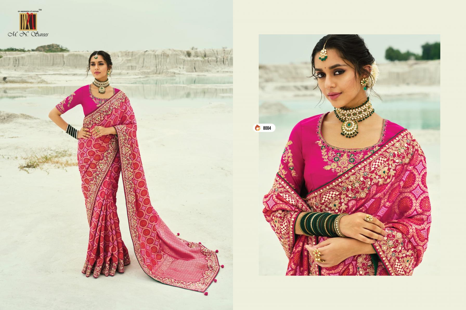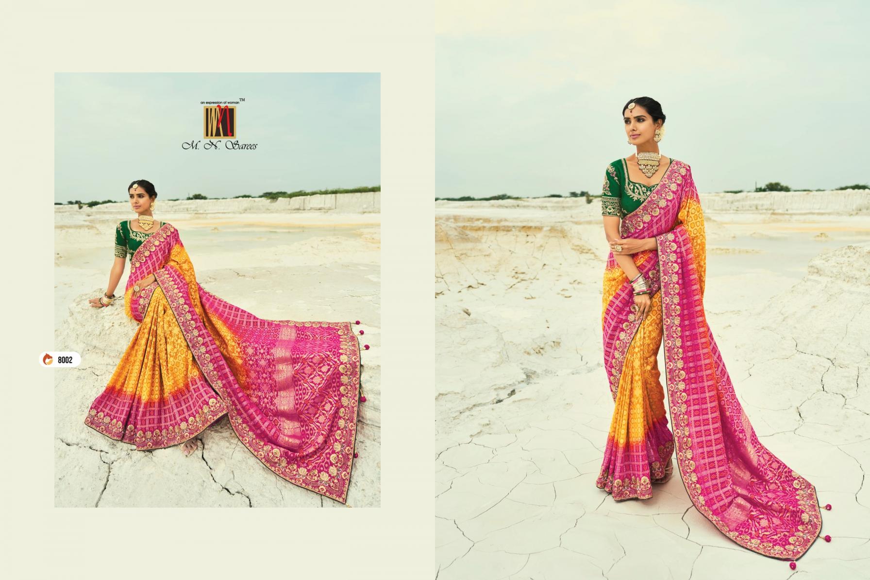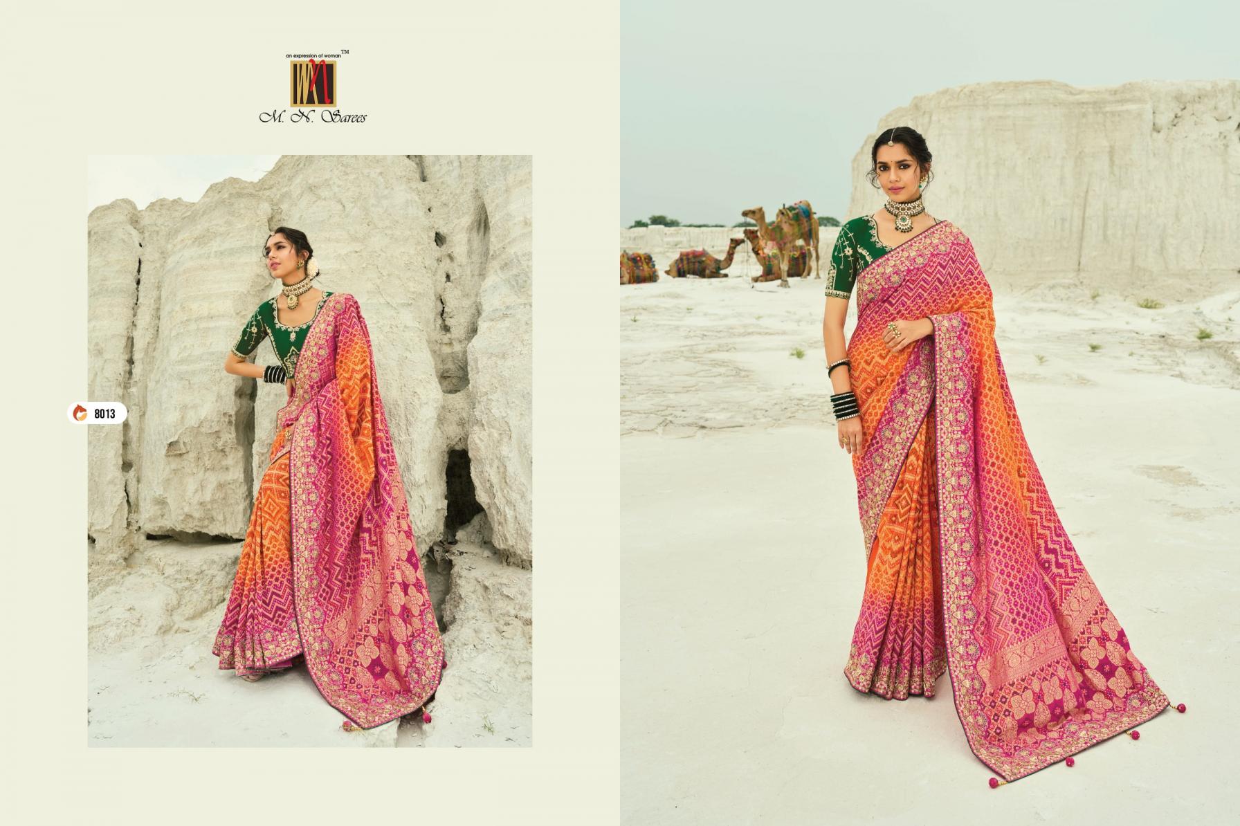 Looking for SHAHI POSHAK VOL 4 BY M N GEORGETTE BANDHEJ SAREES EXPORTS Full Catalouge at Best Price? Buy Now SHAHI POSHAK VOL 4 BY M N GEORGETTE BANDHEJ SAREES EXPORTS at Wholesale Rate of Rs 74087 with Total 13 Pcs from authroized dealer and supplier of M N SAREE Brand. Cost of Each piece is just only Rs 5699 which is very low and affordable price to resale the product in your retail store. rrgandhi is Surat based Wholesale Supplier & Dealer of M N SAREE Brand. Click on Brand name to Know more about Brand's products.