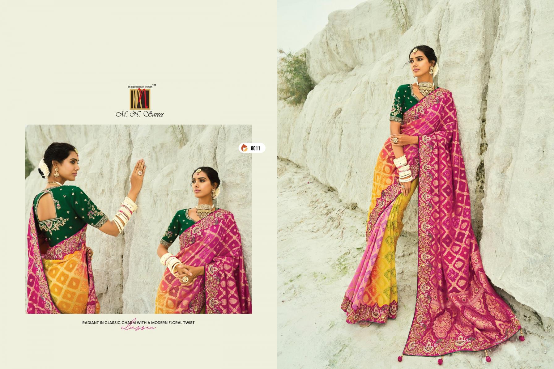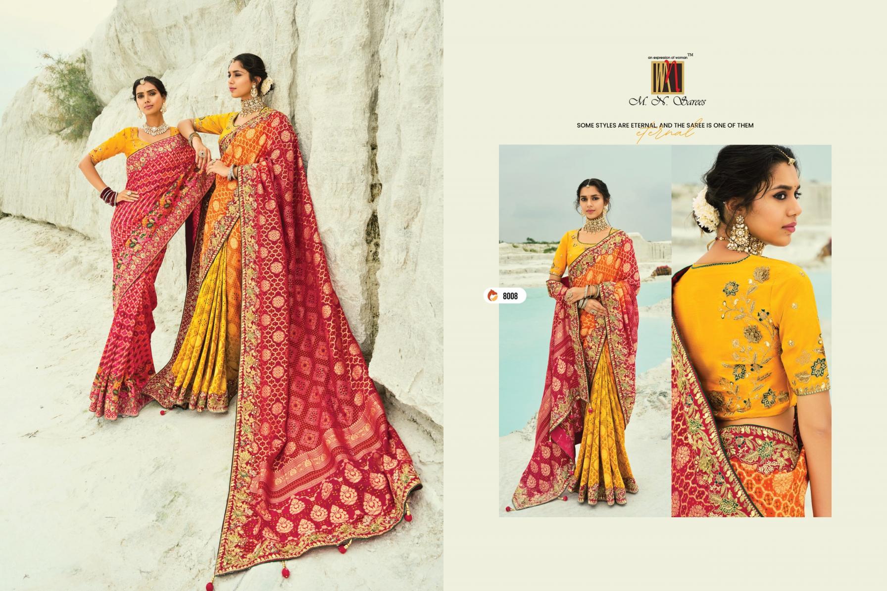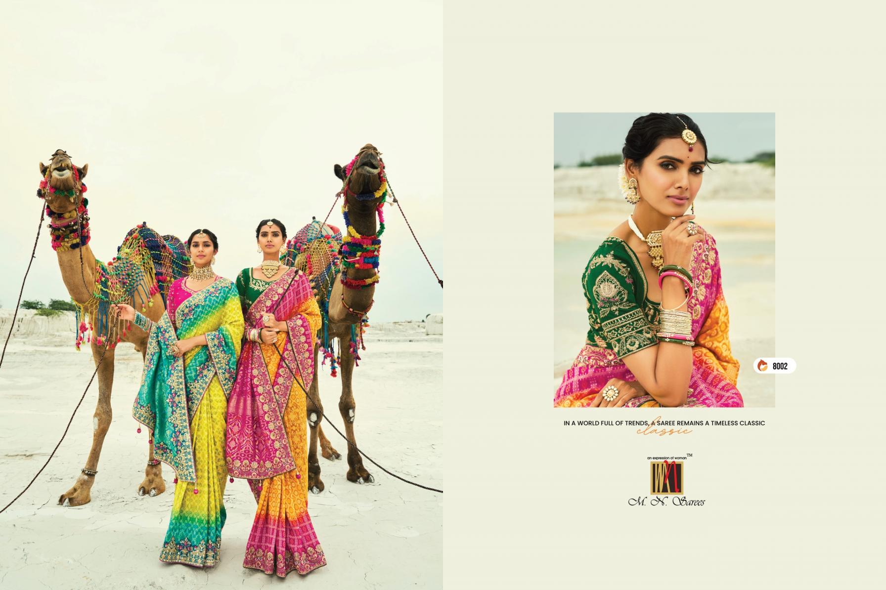 Looking for SHAHI POSHAK VOL 4 BY M N GEORGETTE BANDHEJ SAREES EXPORTS Full Catalouge at Best Price? Buy Now SHAHI POSHAK VOL 4 BY M N GEORGETTE BANDHEJ SAREES EXPORTS at Wholesale Rate of Rs 74087 with Total 13 Pcs from authroized dealer and supplier of M N SAREE Brand. Cost of Each piece is just only Rs 5699 which is very low and affordable price to resale the product in your retail store. rrgandhi is Surat based Wholesale Supplier & Dealer of M N SAREE Brand. Click on Brand name to Know more about Brand's products.
