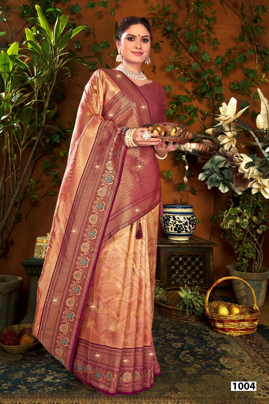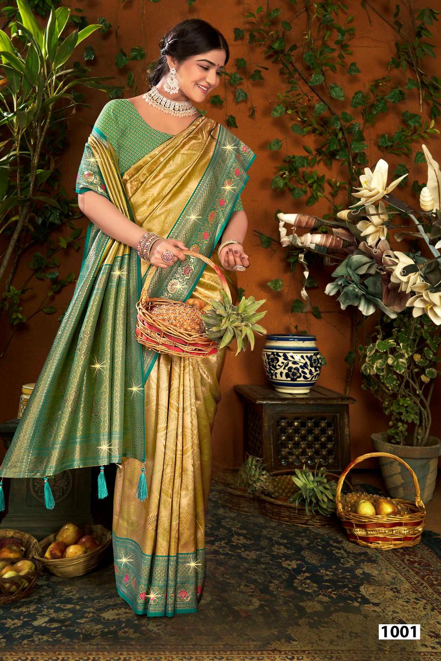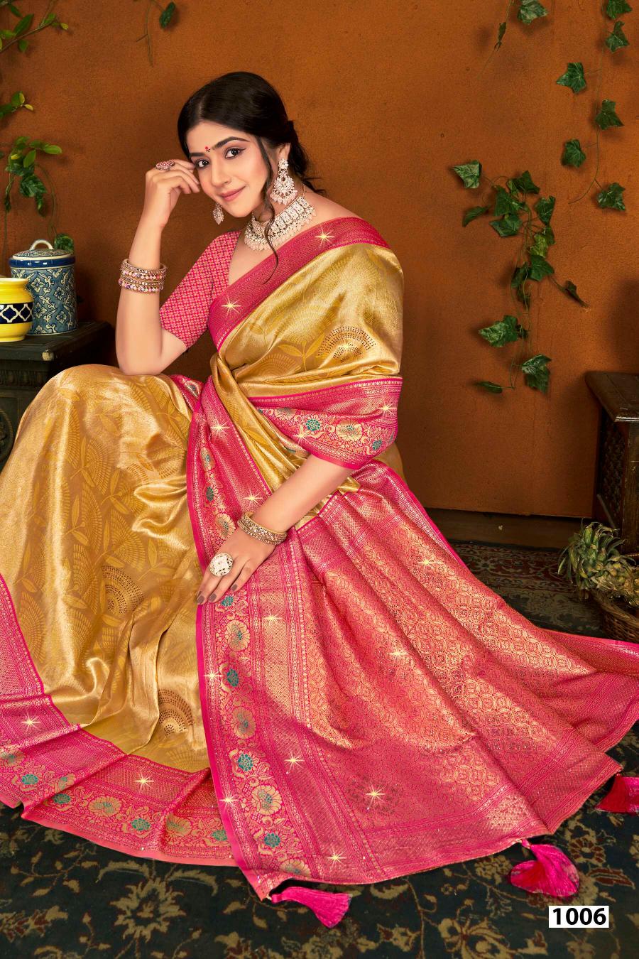 Looking for Shamaa Tissue Saroski Saroj vol.3 Tissue silk saree Full Catalouge at Best Price? Buy Now Shamaa Tissue Saroski Saroj vol.3 Tissue silk saree at Wholesale Rate of Rs 11160 with Total 6 Pcs from authroized dealer and supplier of Saroj Textiles Brand. Cost of Each piece is just only Rs 1860 which is very low and affordable price to resale the product in your retail store. rrgandhi is Surat based Wholesale Supplier & Dealer of Saroj Textiles Brand. Click on Brand name to Know more about Brand's products.