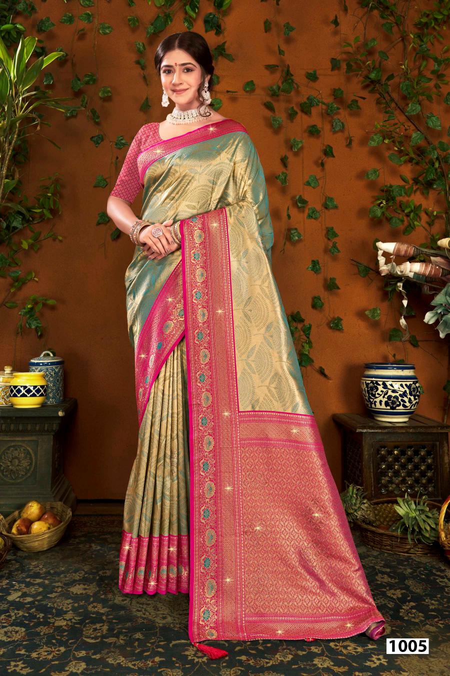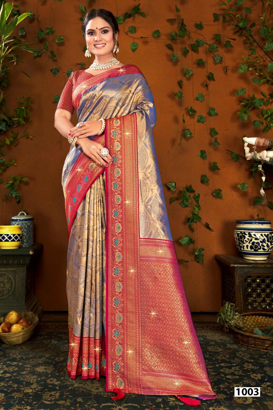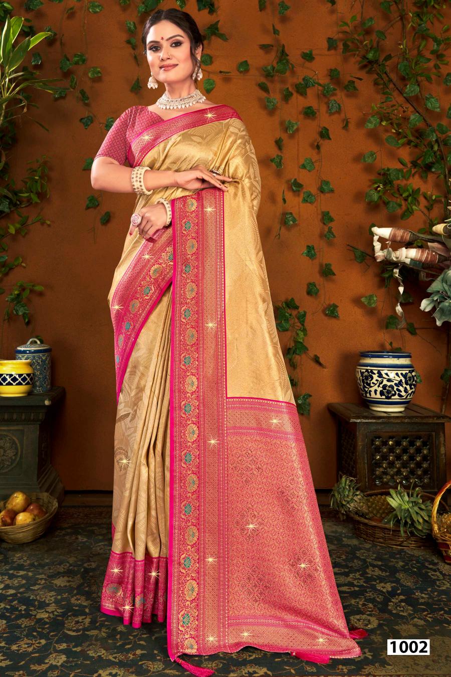 Looking for Shamaa Tissue Saroski Saroj vol.3 Tissue silk saree Full Catalouge at Best Price? Buy Now Shamaa Tissue Saroski Saroj vol.3 Tissue silk saree at Wholesale Rate of Rs 11160 with Total 6 Pcs from authroized dealer and supplier of Saroj Textiles Brand. Cost of Each piece is just only Rs 1860 which is very low and affordable price to resale the product in your retail store. rrgandhi is Surat based Wholesale Supplier & Dealer of Saroj Textiles Brand. Click on Brand name to Know more about Brand's products.