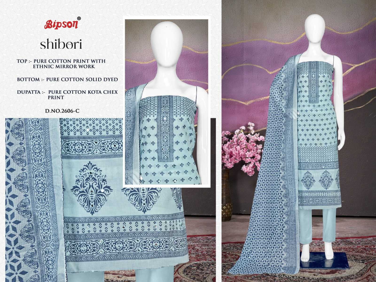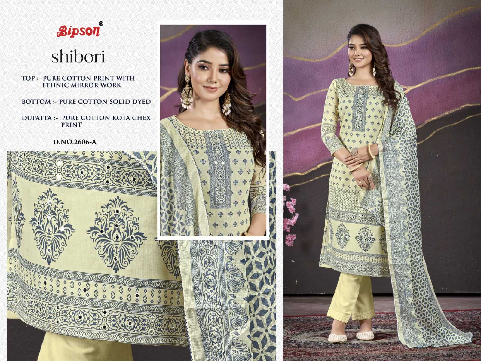 Looking for shibori 2606 by bipson prints cotton comfortable fancy jari work salwar suit Full Catalouge at Best Price? Buy Now shibori 2606 by bipson prints cotton comfortable fancy jari work salwar suit at Wholesale Rate of Rs 2100 with Total 4 Pcs from authroized dealer and supplier of Bipson Fashion Brand. Cost of Each piece is just only Rs 525 which is very low and affordable price to resale the product in your retail store. rrgandhi is Surat based Wholesale Supplier & Dealer of Bipson Fashion Brand. Click on Brand name to Know more about Brand's products.