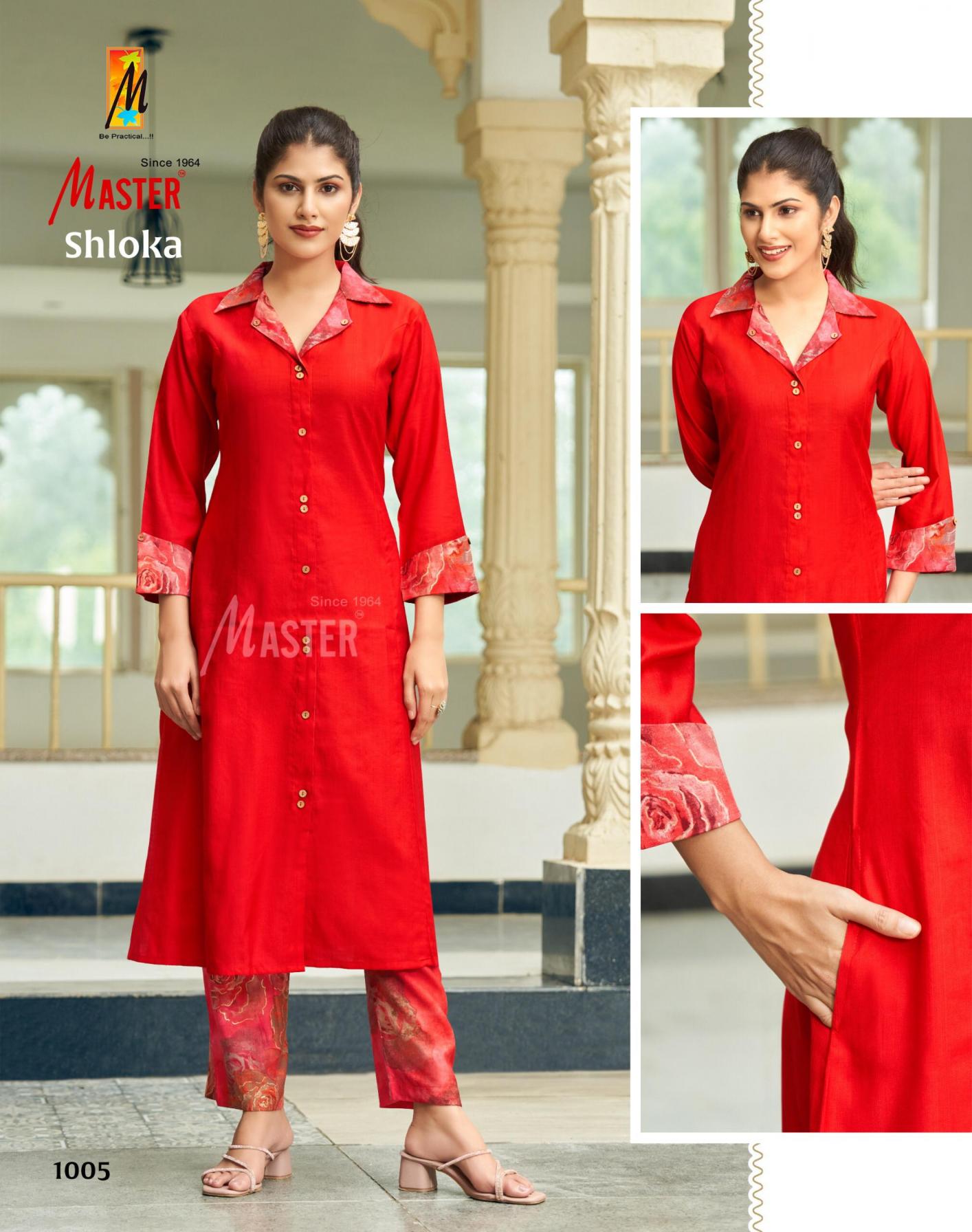 Looking for SHLOKA BY MASTER VERTICAN PLAIN FULL STITCH STYLISH CO-ORD SET Full Catalouge at Best Price? Buy Now SHLOKA BY MASTER VERTICAN PLAIN FULL STITCH STYLISH CO-ORD SET at Wholesale Rate of Rs 4440 with Total 8 Pcs from authroized dealer and supplier of Master Kurti Brand. Cost of Each piece is just only Rs 555 which is very low and affordable price to resale the product in your retail store. rrgandhi is Surat based Wholesale Supplier & Dealer of Master Kurti Brand. Click on Brand name to Know more about Brand's products.