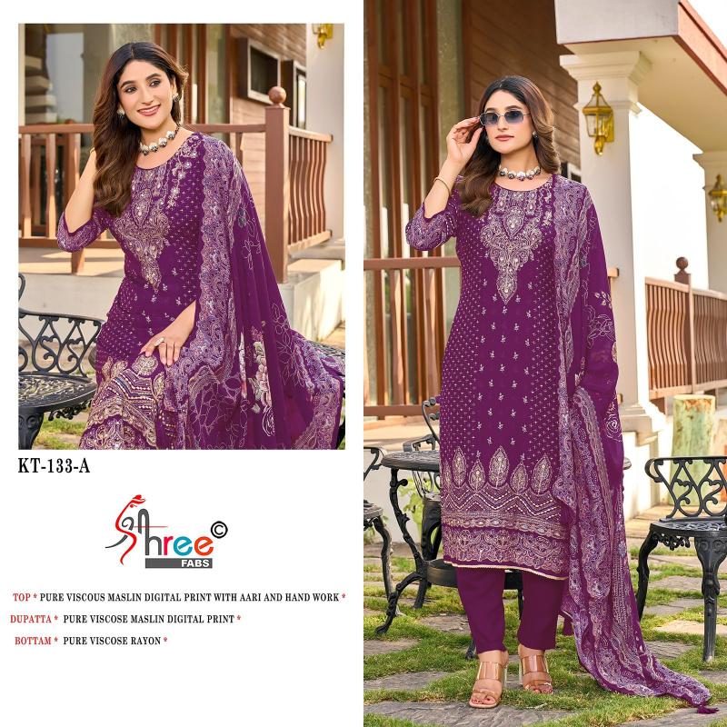 Looking for shree fabs kt 133 hit design muslin classic pakistani unstitch salwar suit Full Catalouge at Best Price? Buy Now shree fabs kt 133 hit design muslin classic pakistani unstitch salwar suit at Wholesale Rate of Rs 2598 with Total 2 Pcs from authroized dealer and supplier of Shree Fabs Brand. Cost of Each piece is just only Rs 1299 which is very low and affordable price to resale the product in your retail store. rrgandhi is Surat based Wholesale Supplier & Dealer of Shree Fabs Brand. Click on Brand name to Know more about Brand's products.