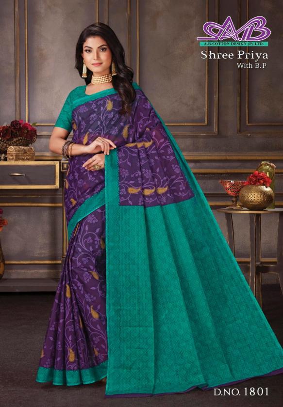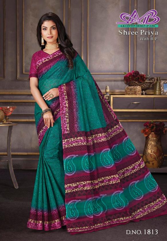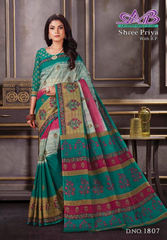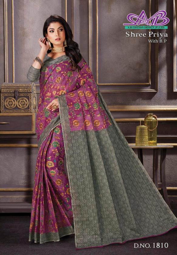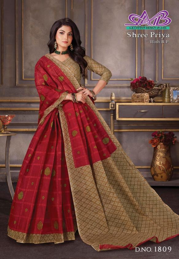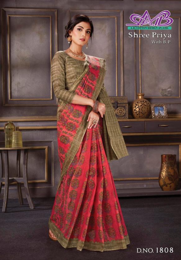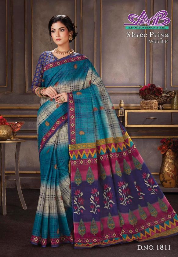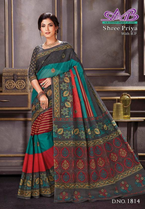 Looking for SHREE PRIYA BY AB MUL MUL COTTON STYLISH SAREES ONLINE Full Catalouge at Best Price? Buy Now SHREE PRIYA BY AB MUL MUL COTTON STYLISH SAREES ONLINE at Wholesale Rate of Rs 8025 with Total 15 Pcs from authroized dealer and supplier of A B Cotton Design Brand. Cost of Each piece is just only Rs 535 which is very low and affordable price to resale the product in your retail store. rrgandhi is Surat based Wholesale Supplier & Dealer of A B Cotton Design Brand. Click on Brand name to Know more about Brand's products.