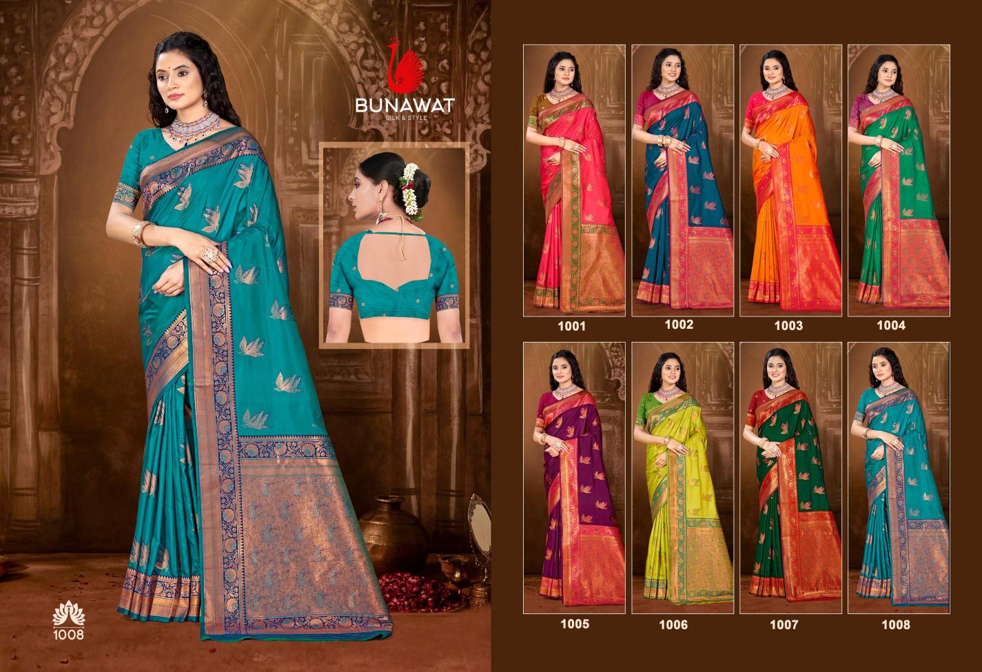 Looking for Shreelekha Silk By Bunawat Latest Designer Traditional Wear Silk Sarees Collection Full Catalouge at Best Price? Buy Now Shreelekha Silk By Bunawat Latest Designer Traditional Wear Silk Sarees Collection at Wholesale Rate of Rs 9800 with Total 8 Pcs from authroized dealer and supplier of Bunawat Brand. Cost of Each piece is just only Rs 1225 which is very low and affordable price to resale the product in your retail store. rrgandhi is Surat based Wholesale Supplier & Dealer of Bunawat Brand. Click on Brand name to Know more about Brand's products.