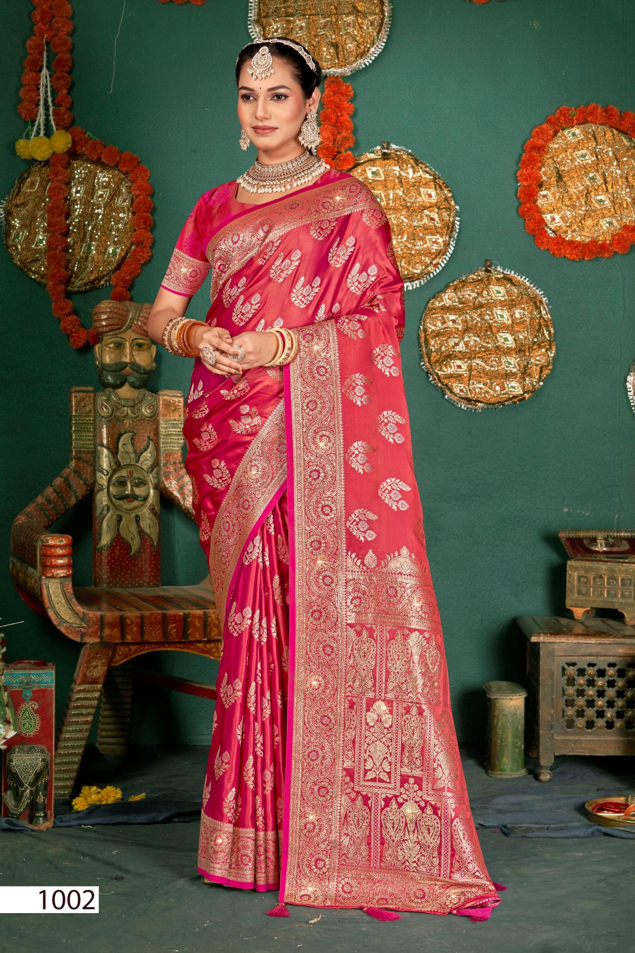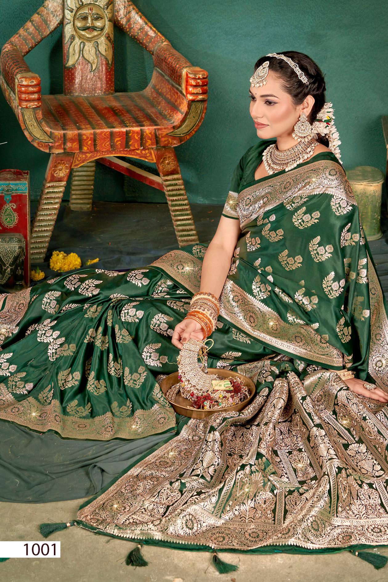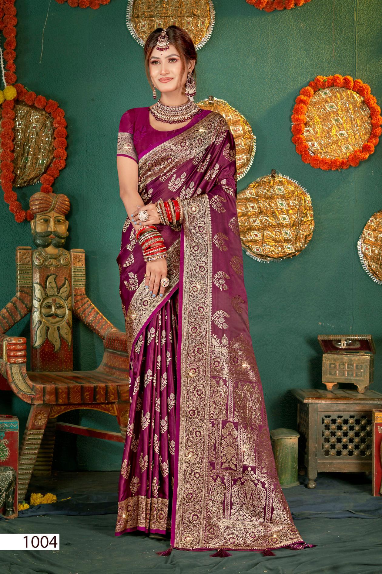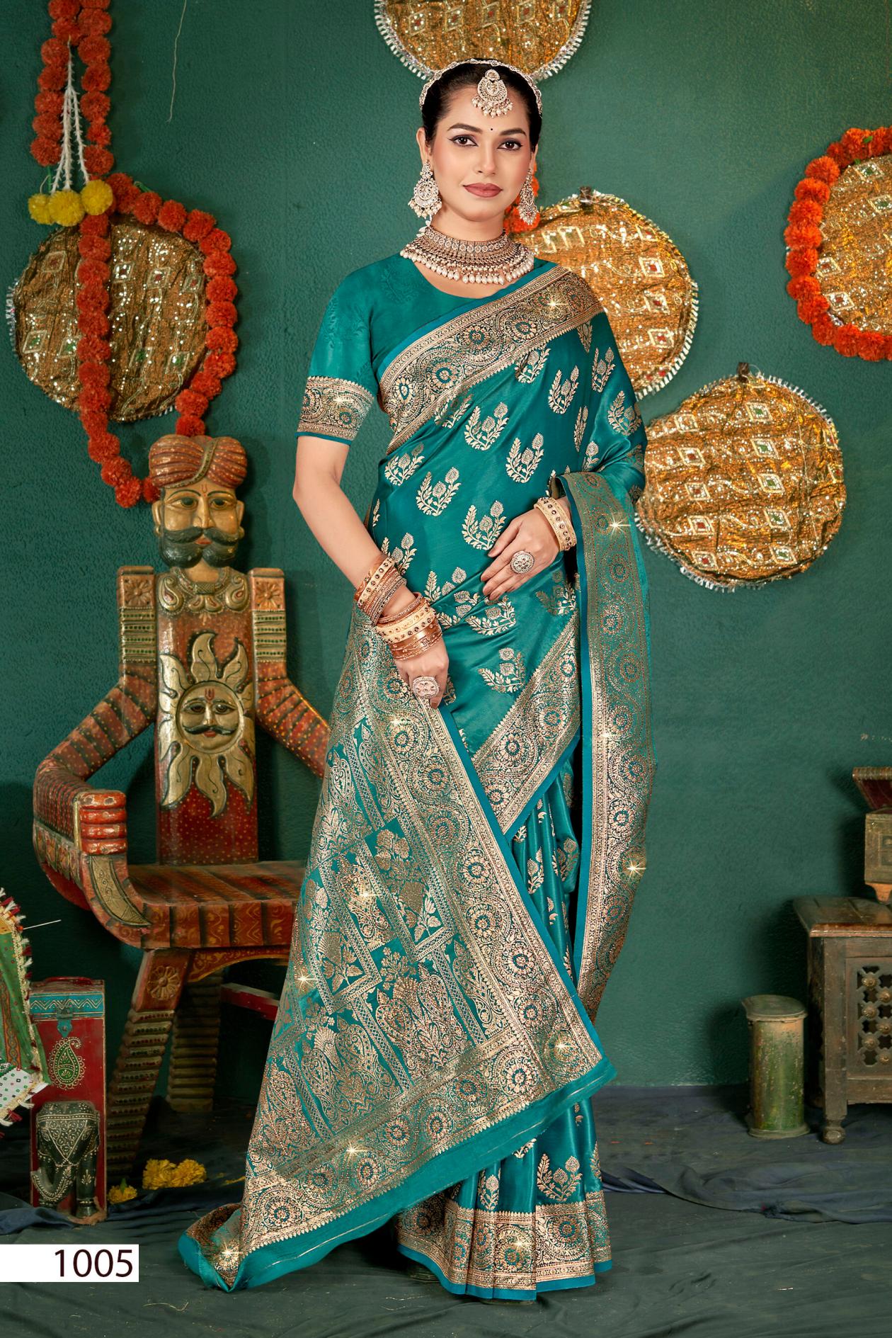 Looking for Shubh mangalam satin saroski saroj vol.1 Satin silk saree Full Catalouge at Best Price? Buy Now Shubh mangalam satin saroski saroj vol.1 Satin silk saree at Wholesale Rate of Rs 7575 with Total 5 Pcs from authroized dealer and supplier of Saroj Textiles Brand. Cost of Each piece is just only Rs 1515 which is very low and affordable price to resale the product in your retail store. rrgandhi is Surat based Wholesale Supplier & Dealer of Saroj Textiles Brand. Click on Brand name to Know more about Brand's products.