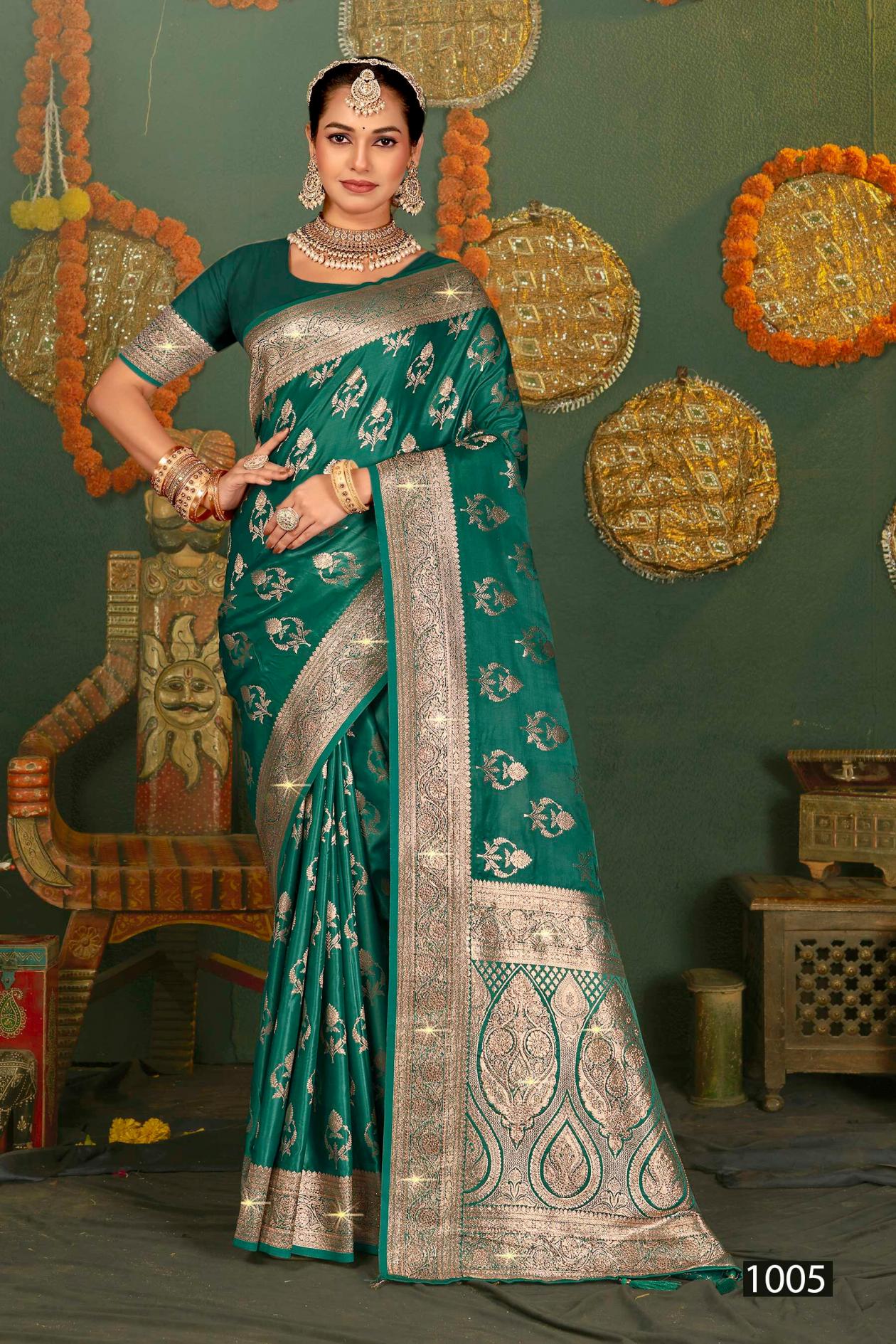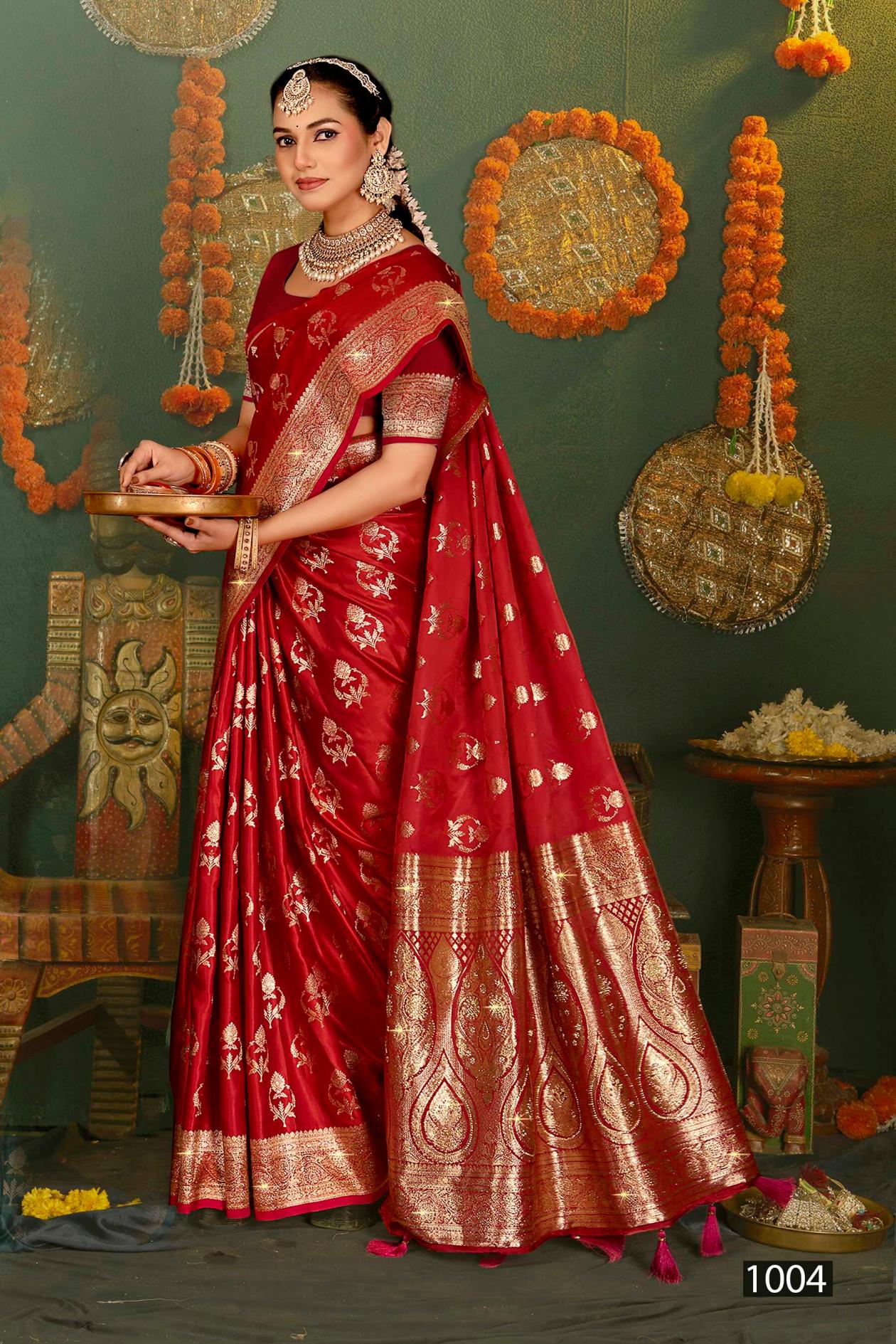 Looking for Shubh mangalam satin saroski saroj vol.4 Satin silk saree Full Catalouge at Best Price? Buy Now Shubh mangalam satin saroski saroj vol.4 Satin silk saree at Wholesale Rate of Rs 9090 with Total 6 Pcs from authroized dealer and supplier of Saroj Textiles Brand. Cost of Each piece is just only Rs 1515 which is very low and affordable price to resale the product in your retail store. rrgandhi is Surat based Wholesale Supplier & Dealer of Saroj Textiles Brand. Click on Brand name to Know more about Brand's products.