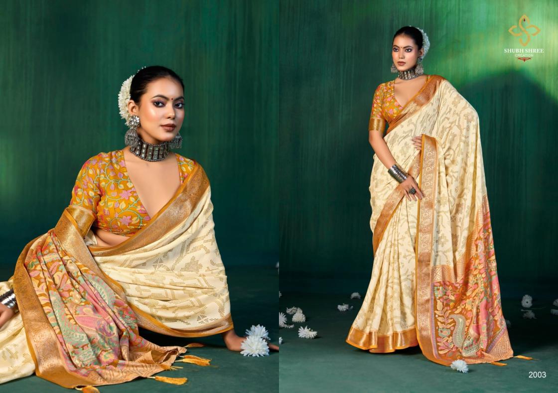 Looking for SHUBH SHREE CREATION DEVYANI VOL 2 DULL MOSS BRASSO SAREES EXPORTS Full Catalouge at Best Price? Buy Now SHUBH SHREE CREATION DEVYANI VOL 2 DULL MOSS BRASSO SAREES EXPORTS at Wholesale Rate of Rs 8600 with Total 8 Pcs from authroized dealer and supplier of Shubh Shree Creation Brand. Cost of Each piece is just only Rs 1075 which is very low and affordable price to resale the product in your retail store. rrgandhi is Surat based Wholesale Supplier & Dealer of Shubh Shree Creation Brand. Click on Brand name to Know more about Brand's products.