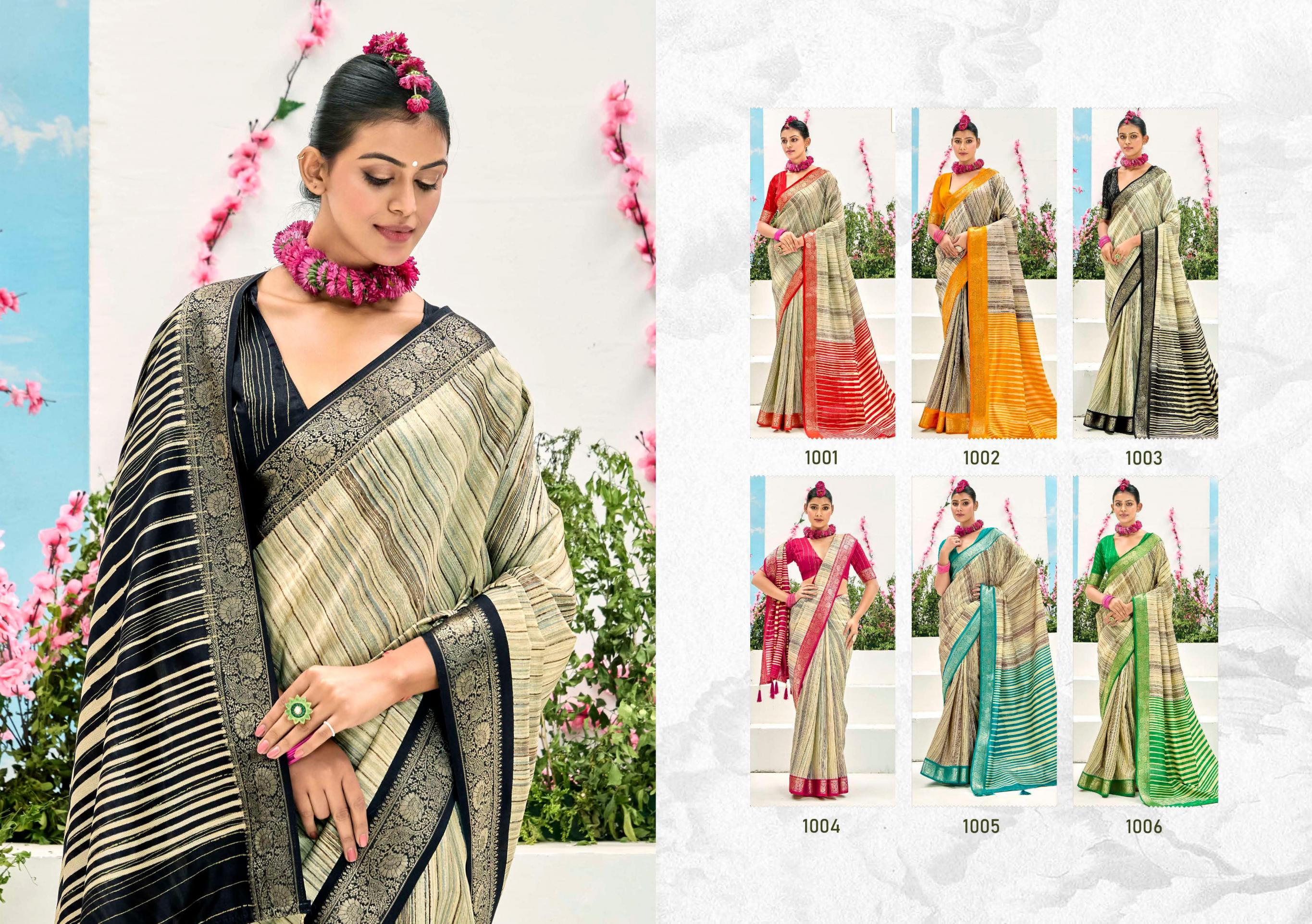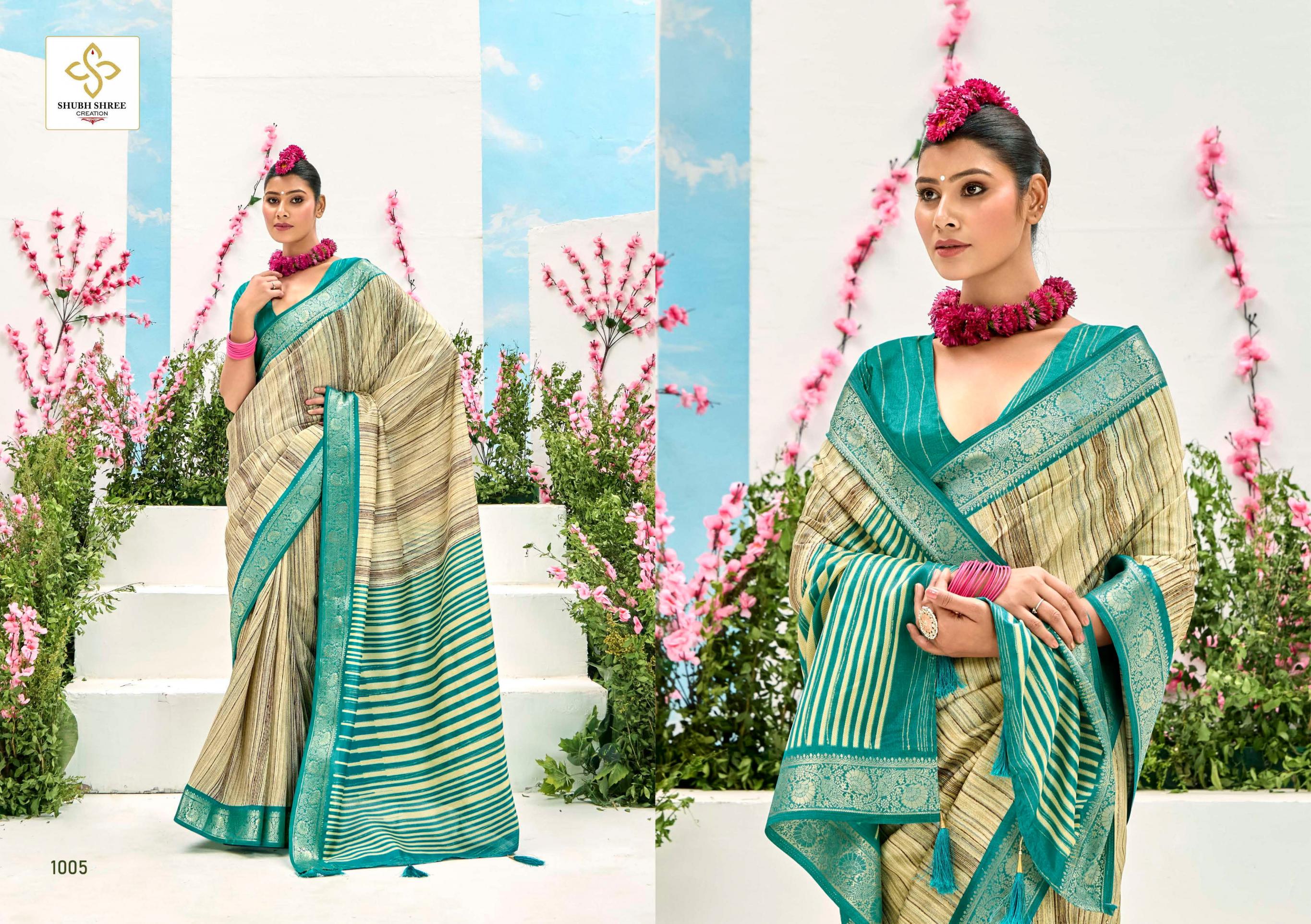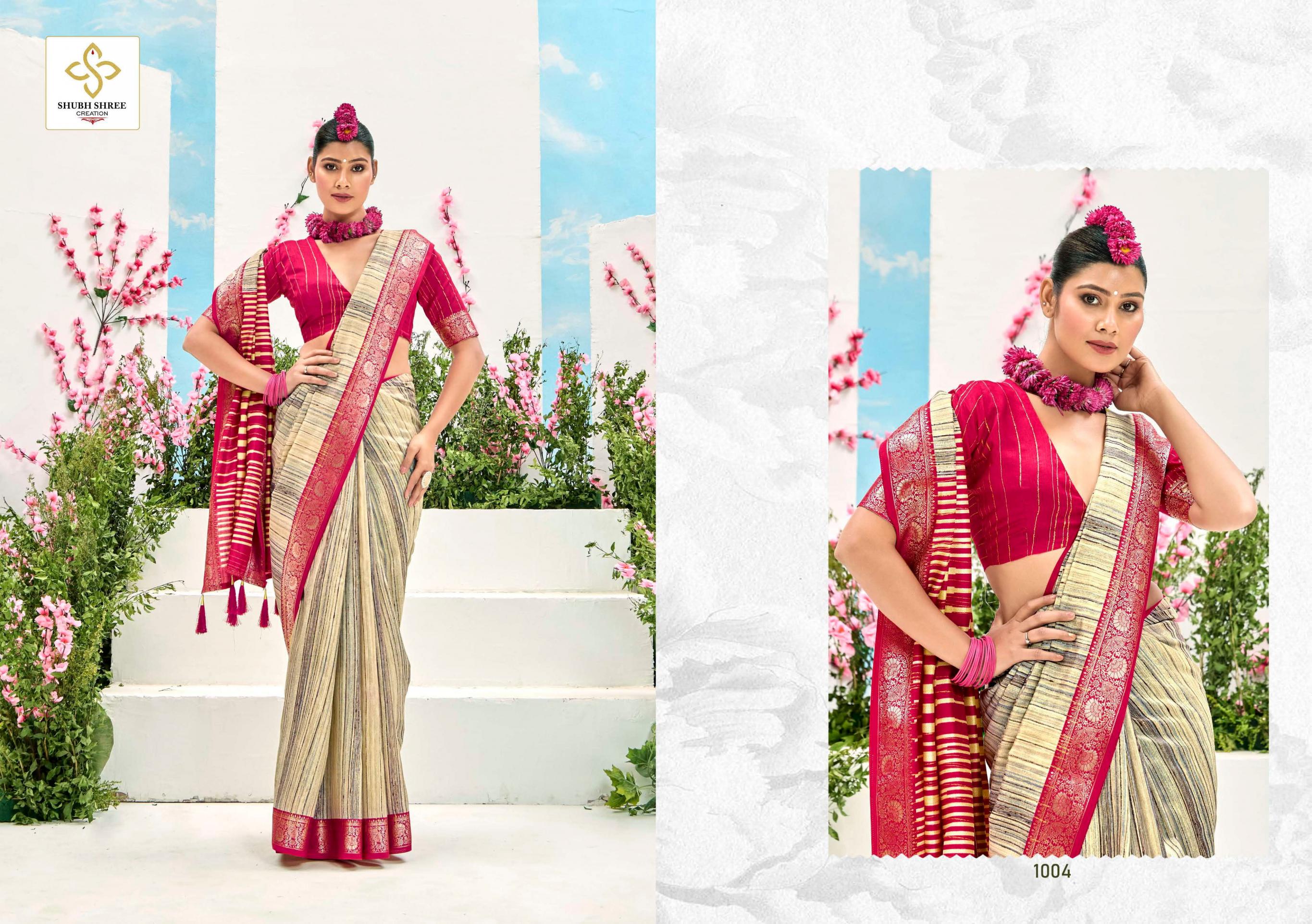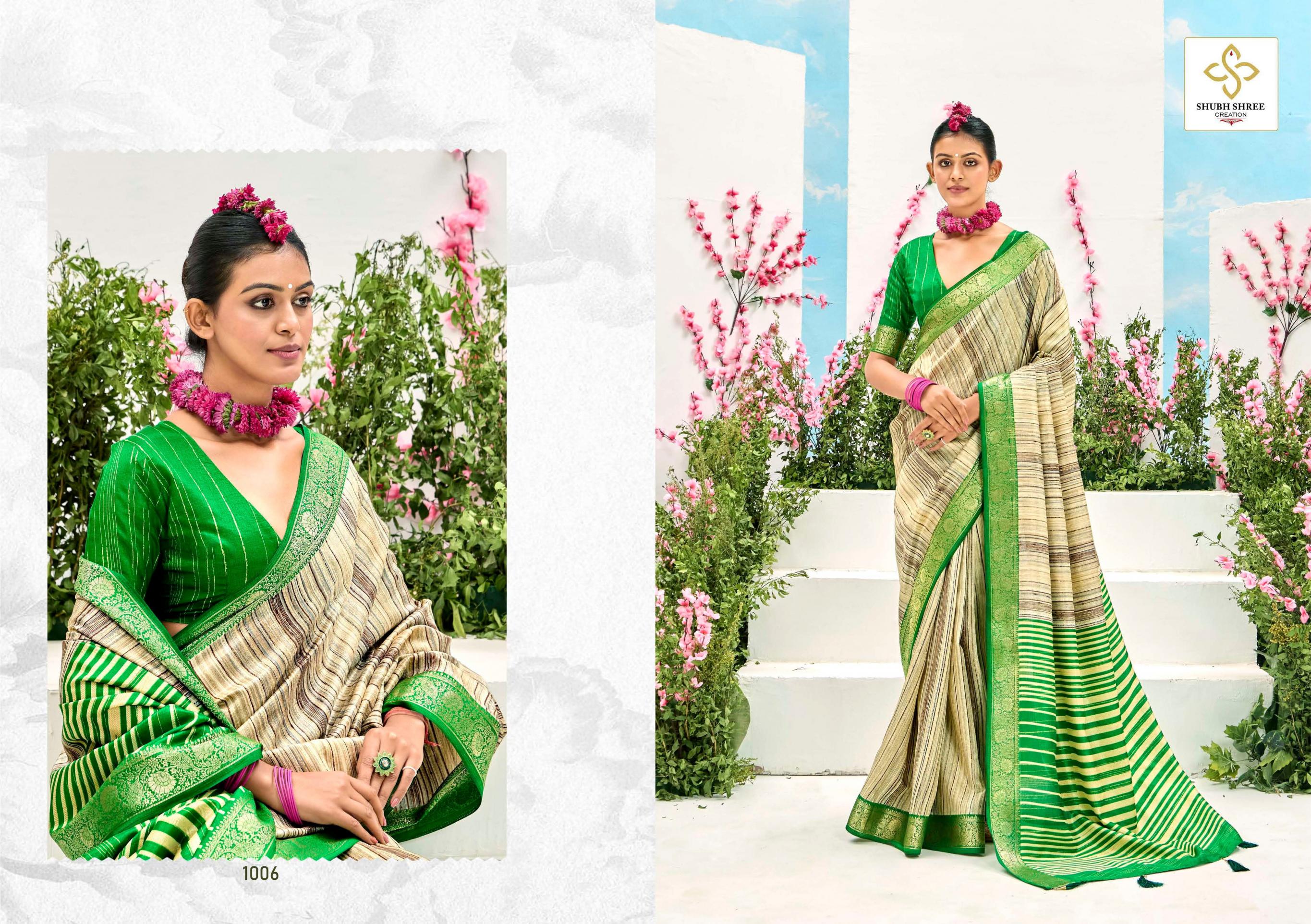 Looking for SHUBH SHREE CREATION TAKSHIKA KHADI KASAB JACQUARD UNIQUE SAREES Full Catalouge at Best Price? Buy Now SHUBH SHREE CREATION TAKSHIKA KHADI KASAB JACQUARD UNIQUE SAREES at Wholesale Rate of Rs 5250 with Total 6 Pcs from authroized dealer and supplier of Shubh Shree Creation Brand. Cost of Each piece is just only Rs 875 which is very low and affordable price to resale the product in your retail store. rrgandhi is Surat based Wholesale Supplier & Dealer of Shubh Shree Creation Brand. Click on Brand name to Know more about Brand's products.