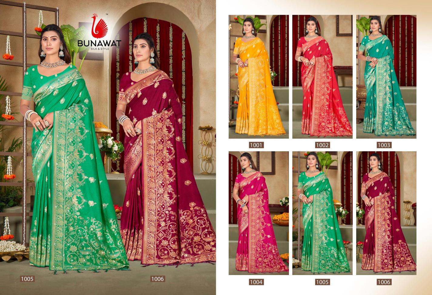 Looking for Shubhshree Vol-6 Latest Designer Traditional Wear Silk Sarees Collection Full Catalouge at Best Price? Buy Now Shubhshree Vol-6 Latest Designer Traditional Wear Silk Sarees Collection at Wholesale Rate of Rs 8394 with Total 6 Pcs from authroized dealer and supplier of Bunawat Brand. Cost of Each piece is just only Rs 1399 which is very low and affordable price to resale the product in your retail store. rrgandhi is Surat based Wholesale Supplier & Dealer of Bunawat Brand. Click on Brand name to Know more about Brand's products.