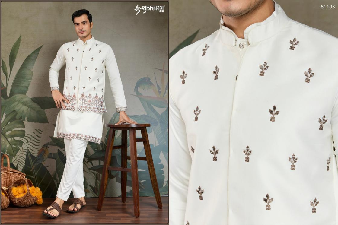 Looking for SHUBHVASTRA MAHARAJA MODE POPULAR DESIGN FULL STITCH SILK MENS KURTA Full Catalouge at Best Price? Buy Now SHUBHVASTRA MAHARAJA MODE POPULAR DESIGN FULL STITCH SILK MENS KURTA at Wholesale Rate of Rs 8950 with Total 5 Pcs from authroized dealer and supplier of Shubh Vastra Brand. Cost of Each piece is just only Rs 1790 which is very low and affordable price to resale the product in your retail store. rrgandhi is Surat based Wholesale Supplier & Dealer of Shubh Vastra Brand. Click on Brand name to Know more about Brand's products.