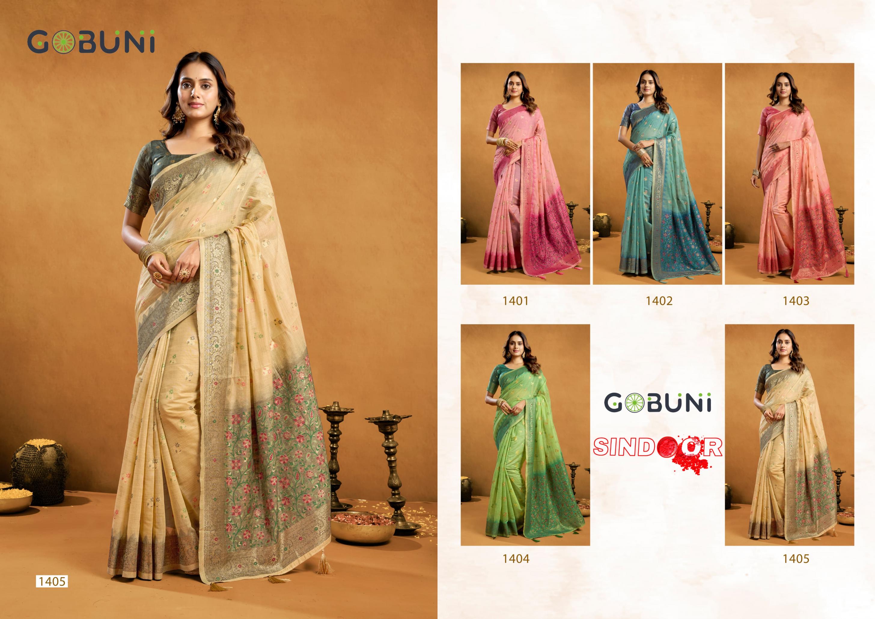 Looking for SINDOOR BY GOBUNI COTTON DESIGNER SAREES EXPORTS Full Catalouge at Best Price? Buy Now SINDOOR BY GOBUNI COTTON DESIGNER SAREES EXPORTS at Wholesale Rate of Rs 7225 with Total 5 Pcs from authroized dealer and supplier of Gobuni Brand. Cost of Each piece is just only Rs 1445 which is very low and affordable price to resale the product in your retail store. rrgandhi is Surat based Wholesale Supplier & Dealer of Gobuni Brand. Click on Brand name to Know more about Brand's products.