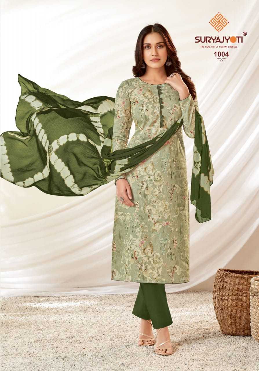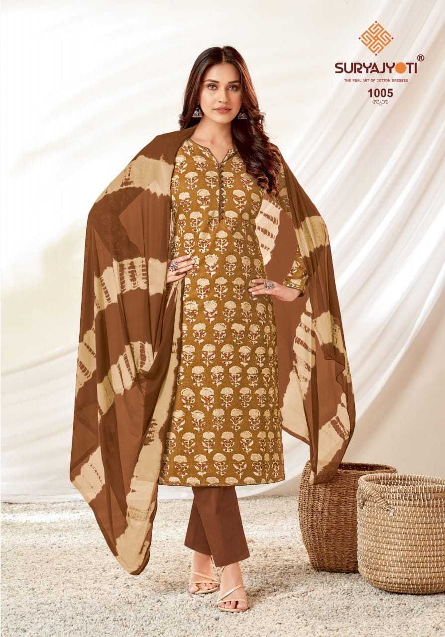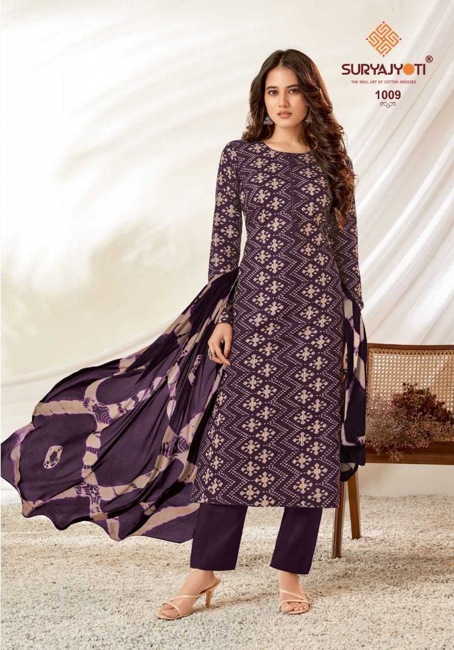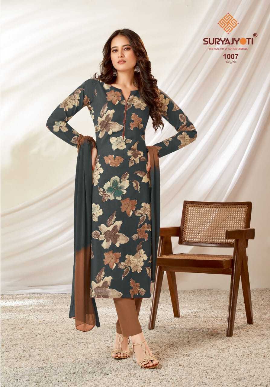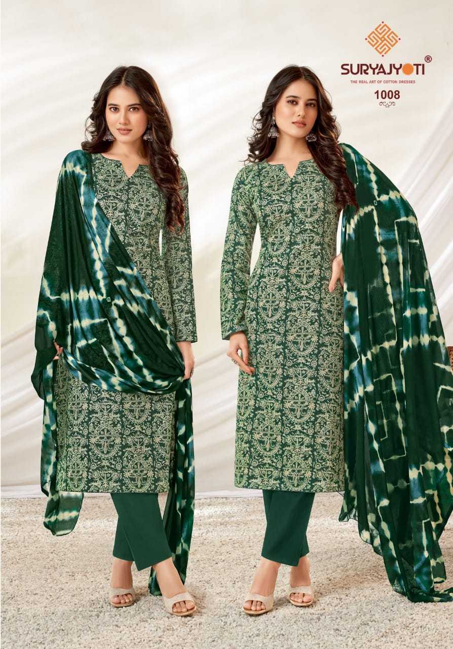 Looking for siya vol-1 by suryajyoti stylish cambric cotton unstitch salwar kameez exports Full Catalouge at Best Price? Buy Now siya vol-1 by suryajyoti stylish cambric cotton unstitch salwar kameez exports at Wholesale Rate of Rs 5150 with Total 10 Pcs from authroized dealer and supplier of Suryajyoti Cotton Brand. Cost of Each piece is just only Rs 515 which is very low and affordable price to resale the product in your retail store. rrgandhi is Surat based Wholesale Supplier & Dealer of Suryajyoti Cotton Brand. Click on Brand name to Know more about Brand's products.