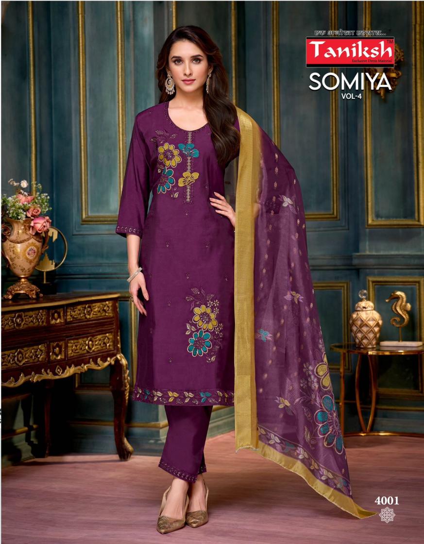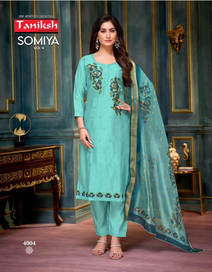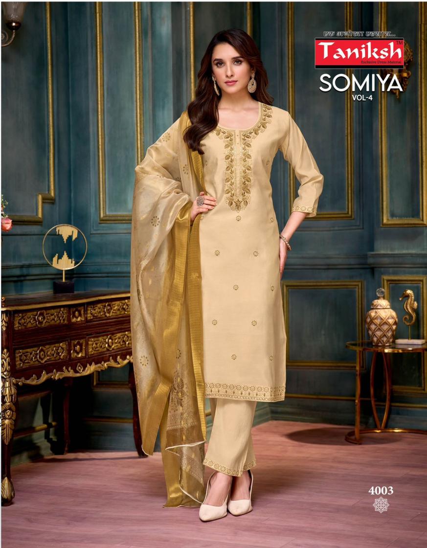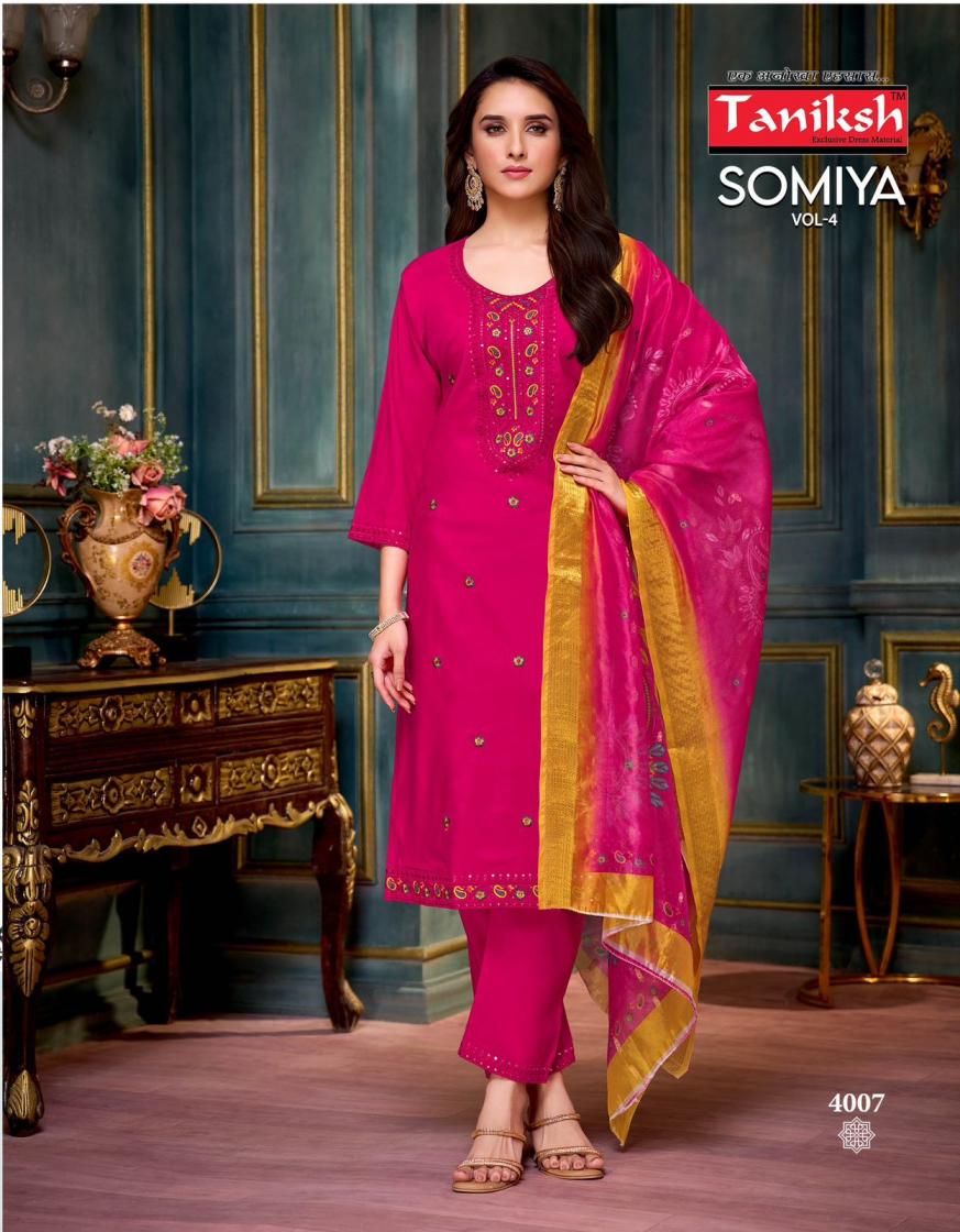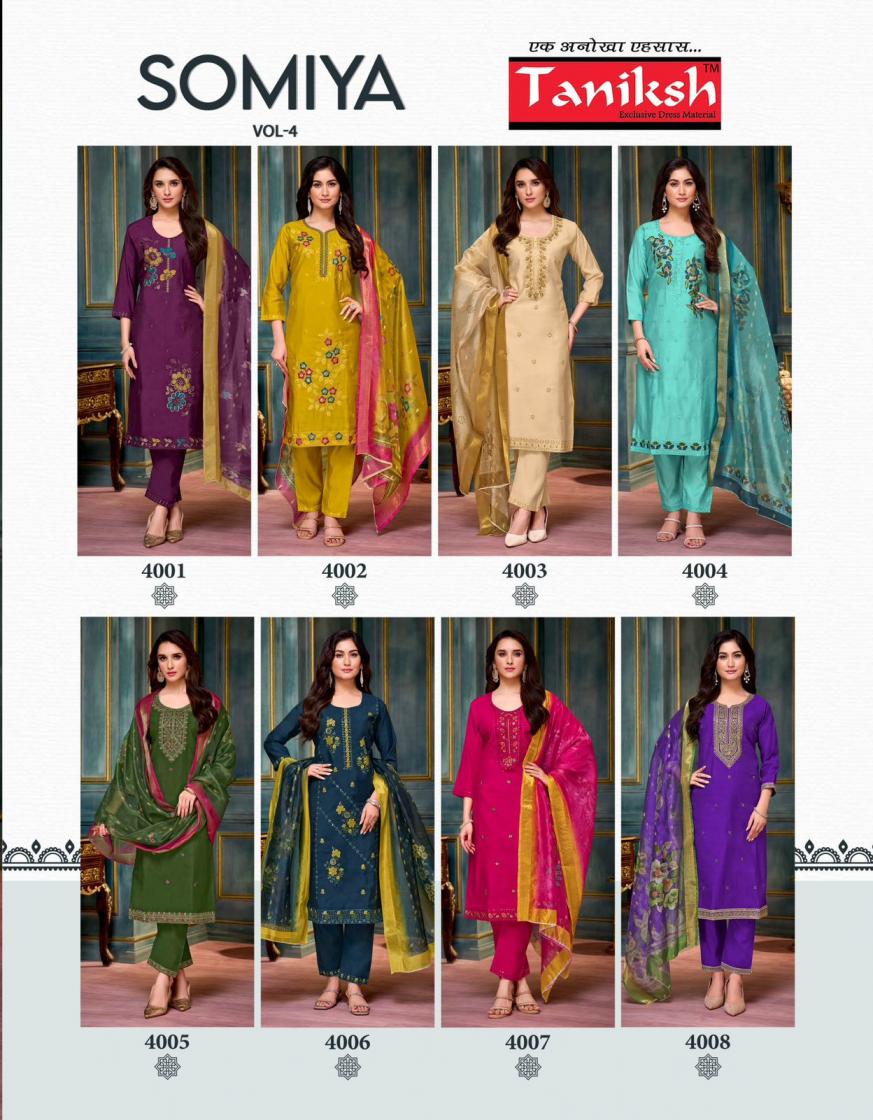 Looking for SOMIYA VOL 4 BY TANIKSH ROMAN FULLY STITCH ELEGANCE 3PCS DRESS Full Catalouge at Best Price? Buy Now SOMIYA VOL 4 BY TANIKSH ROMAN FULLY STITCH ELEGANCE 3PCS DRESS at Wholesale Rate of Rs 5480 with Total 8 Pcs from authroized dealer and supplier of Taniksh Brand. Cost of Each piece is just only Rs 685 which is very low and affordable price to resale the product in your retail store. rrgandhi is Surat based Wholesale Supplier & Dealer of Taniksh Brand. Click on Brand name to Know more about Brand's products.