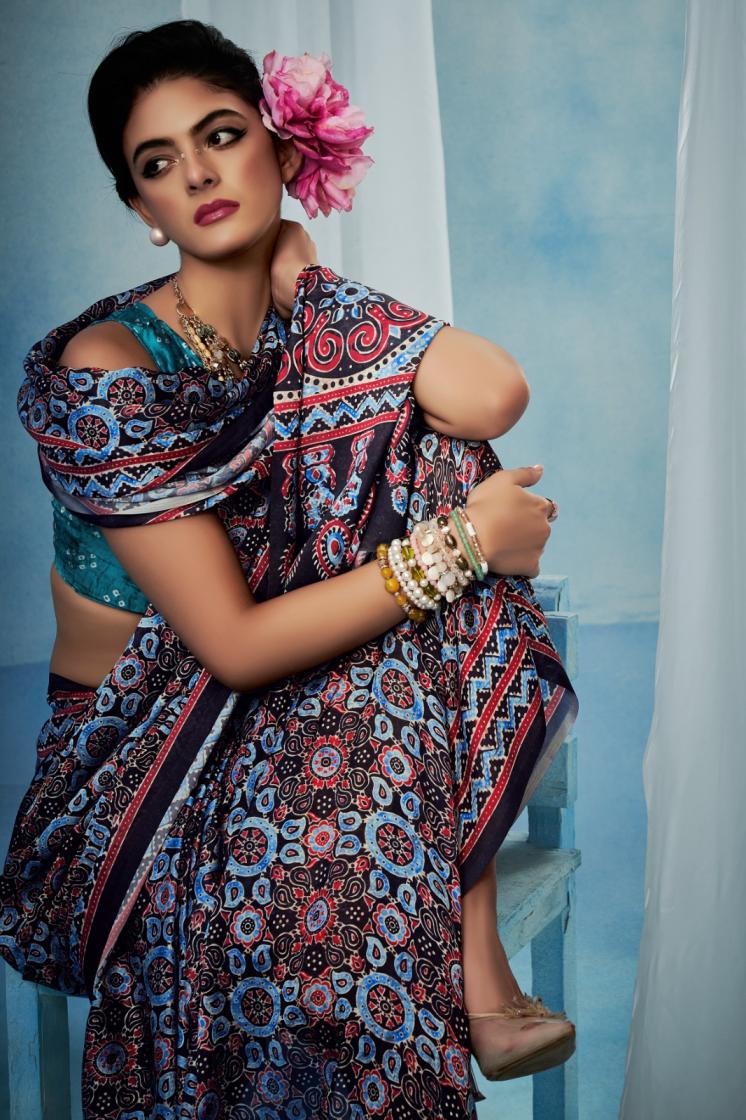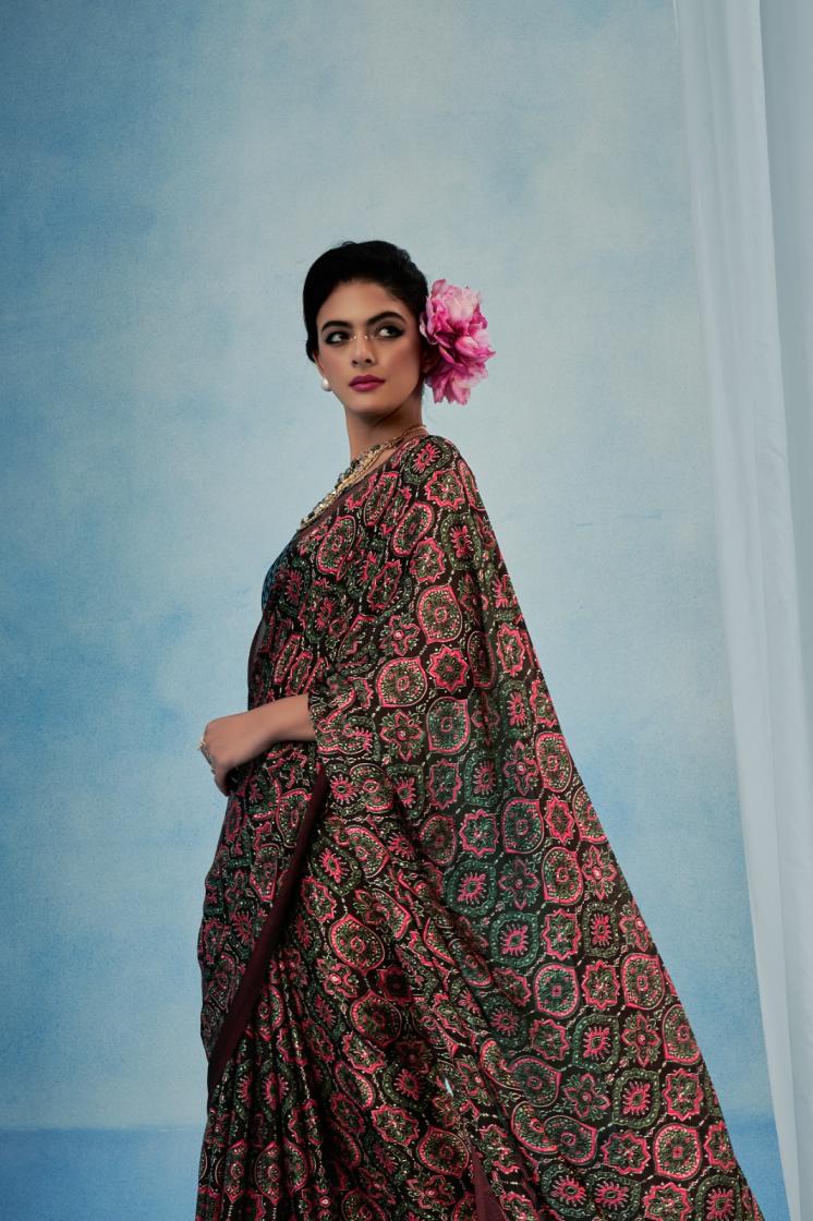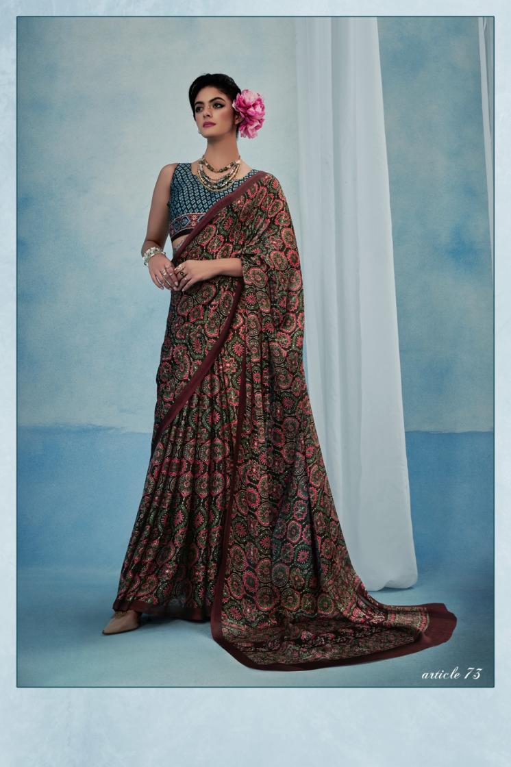 Looking for SOSY AJRAKH SILK SATIN GEORGETTE HIT DESIGN SAREE FOR WOMENS Full Catalouge at Best Price? Buy Now SOSY AJRAKH SILK SATIN GEORGETTE HIT DESIGN SAREE FOR WOMENS at Wholesale Rate of Rs 4650 with Total 6 Pcs from authroized dealer and supplier of Sosy Brand. Cost of Each piece is just only Rs 775 which is very low and affordable price to resale the product in your retail store. rrgandhi is Surat based Wholesale Supplier & Dealer of Sosy Brand. Click on Brand name to Know more about Brand's products.