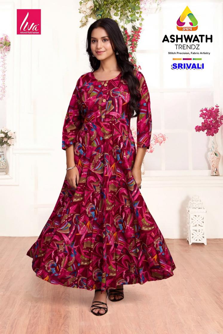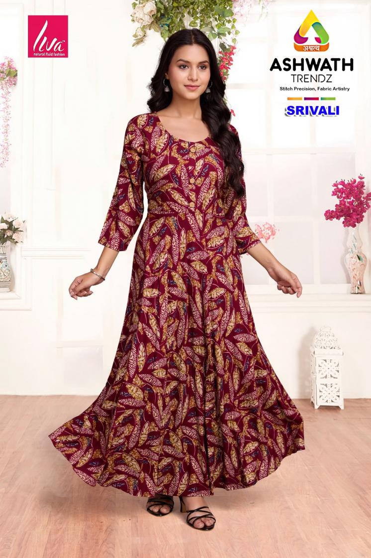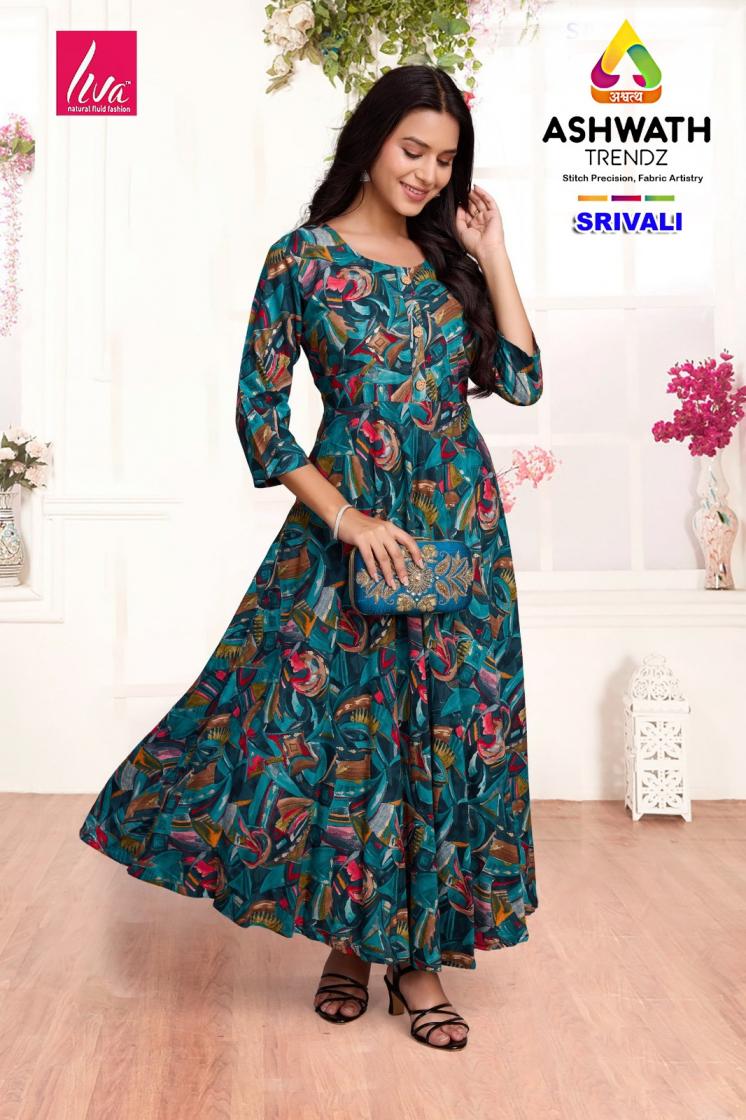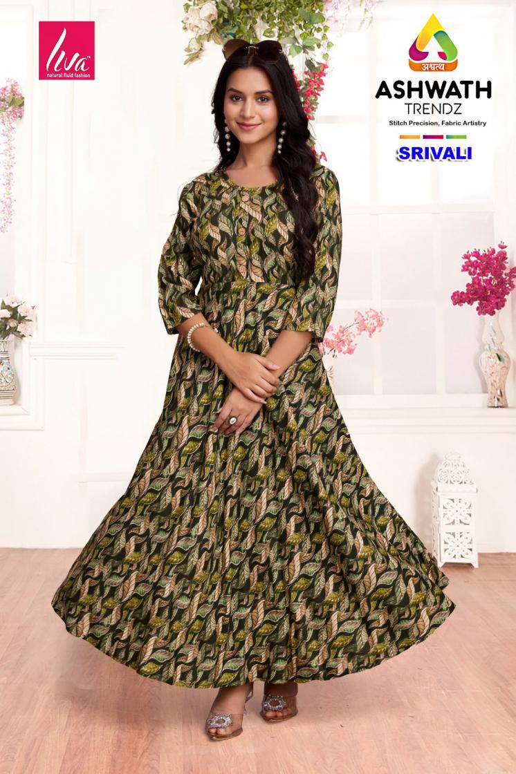 Looking for SRIVALI BY ASHWATH TRENDZ READYMADE UNIQUE COMBO LONG GOWN Full Catalouge at Best Price? Buy Now SRIVALI BY ASHWATH TRENDZ READYMADE UNIQUE COMBO LONG GOWN at Wholesale Rate of Rs 41760 with Total 96 Pcs from authroized dealer and supplier of Ashwath Trendz Brand. Cost of Each piece is just only Rs 435 which is very low and affordable price to resale the product in your retail store. rrgandhi is Surat based Wholesale Supplier & Dealer of Ashwath Trendz Brand. Click on Brand name to Know more about Brand's products.