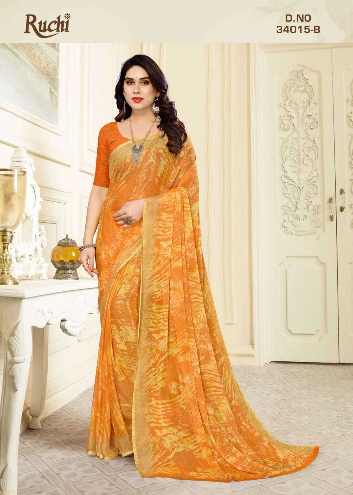 Looking for star chiffon lehriya vol 15 by ruchi saree regular wear saree with blouse Full Catalouge at Best Price? Buy Now star chiffon lehriya vol 15 by ruchi saree regular wear saree with blouse at Wholesale Rate of Rs 2502 with Total 6 Pcs from authroized dealer and supplier of Ruchi Brand. Cost of Each piece is just only Rs 417 which is very low and affordable price to resale the product in your retail store. rrgandhi is Surat based Wholesale Supplier & Dealer of Ruchi Brand. Click on Brand name to Know more about Brand's products.