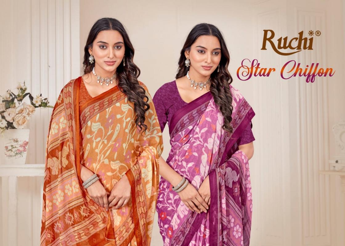 Looking for STAR CHIFFON VOL 184 BY RUCHI CHIFFON SAREE SUPPLIER Full Catalouge at Best Price? Buy Now STAR CHIFFON VOL 184 BY RUCHI CHIFFON SAREE SUPPLIER at Wholesale Rate of Rs 5004 with Total 12 Pcs from authroized dealer and supplier of Ruchi Brand. Cost of Each piece is just only Rs 417 which is very low and affordable price to resale the product in your retail store. rrgandhi is Surat based Wholesale Supplier & Dealer of Ruchi Brand. Click on Brand name to Know more about Brand's products.