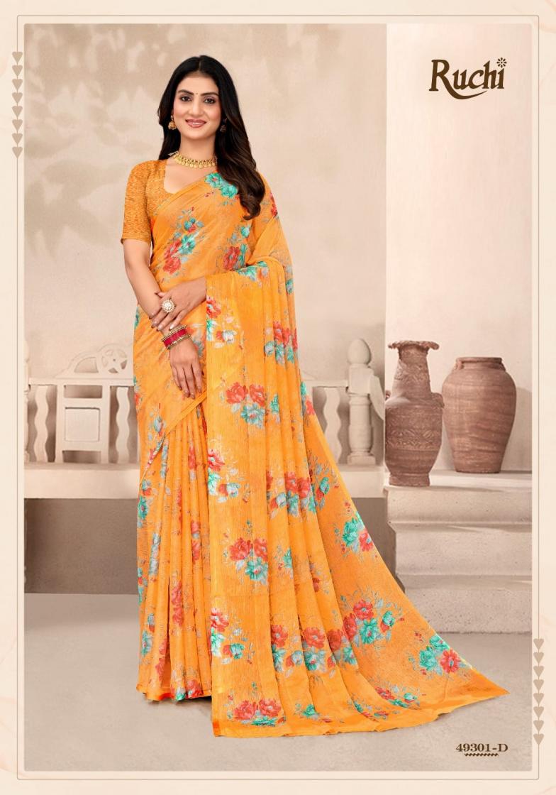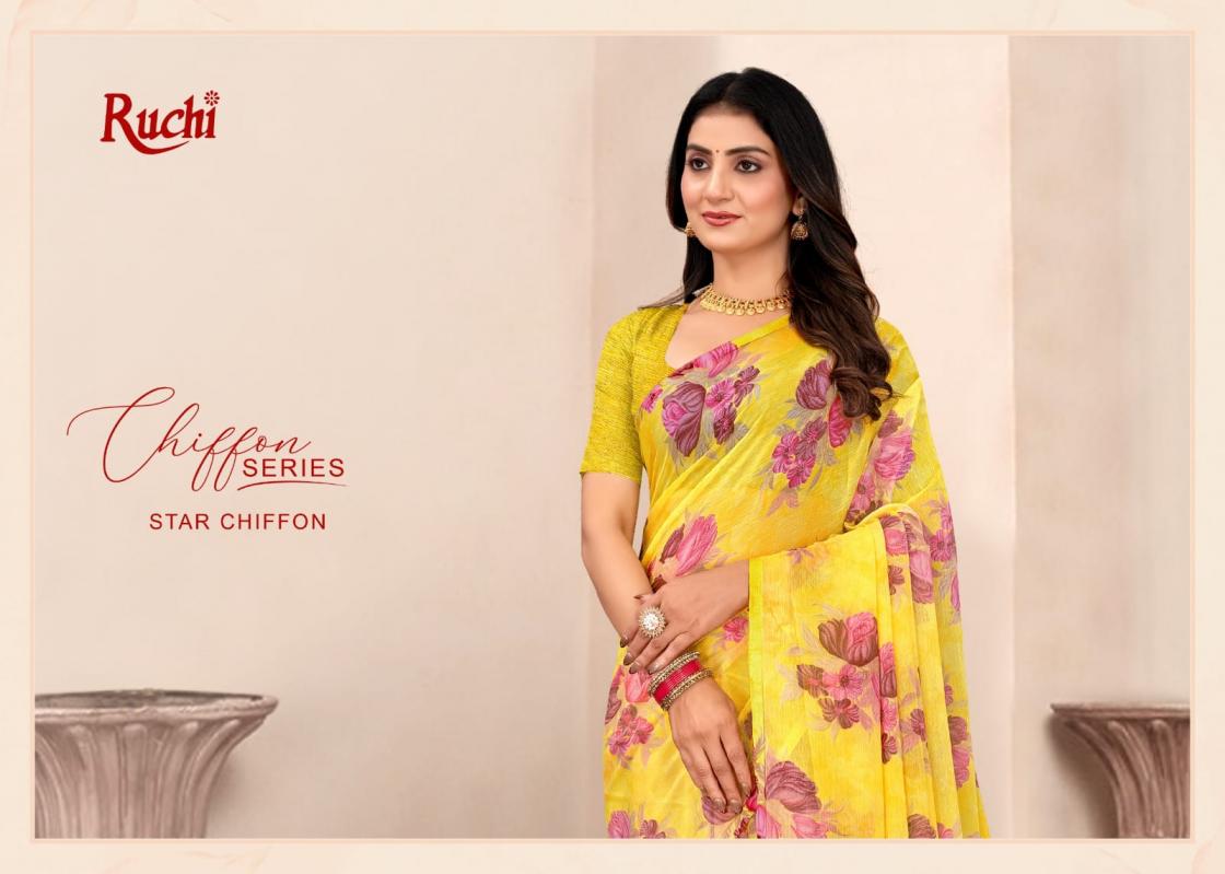 Looking for STAR CHIFFON VOL 204 BY RUCHI UNIQUE CHIFFON SAREES ONLINE Full Catalouge at Best Price? Buy Now STAR CHIFFON VOL 204 BY RUCHI UNIQUE CHIFFON SAREES ONLINE at Wholesale Rate of Rs 5004 with Total 12 Pcs from authroized dealer and supplier of Ruchi Brand. Cost of Each piece is just only Rs 417 which is very low and affordable price to resale the product in your retail store. rrgandhi is Surat based Wholesale Supplier & Dealer of Ruchi Brand. Click on Brand name to Know more about Brand's products.
